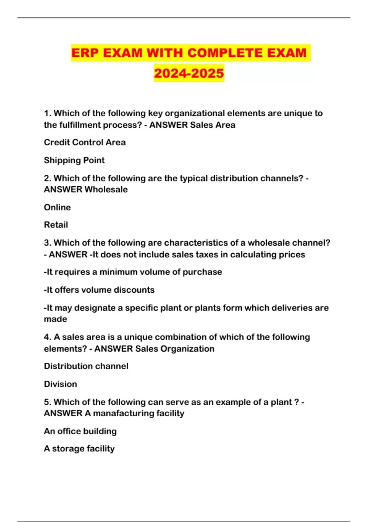 ERP EXAM WITH COMPLETE EXAM