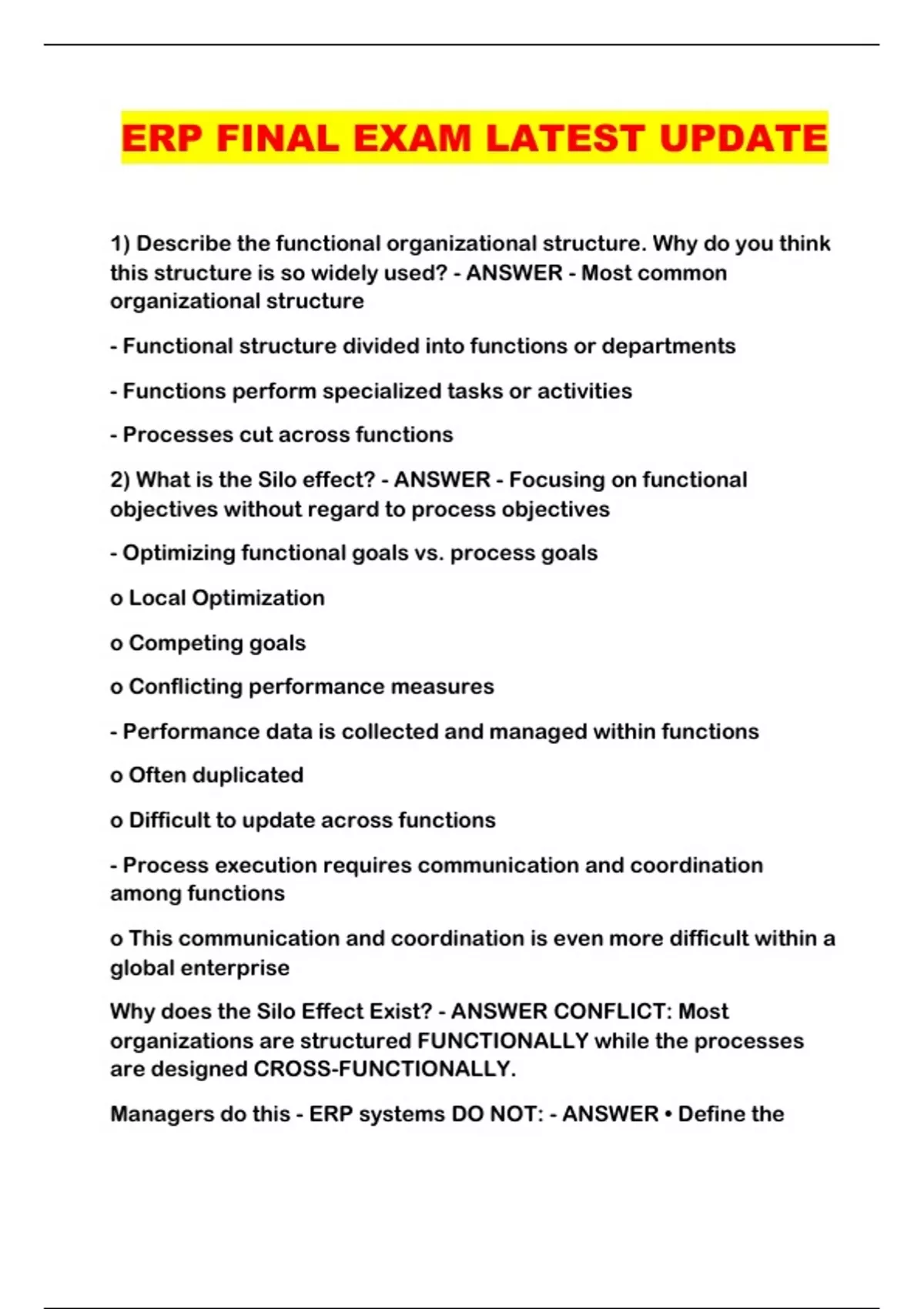 ERP FINAL EXAM LATEST UPDATE