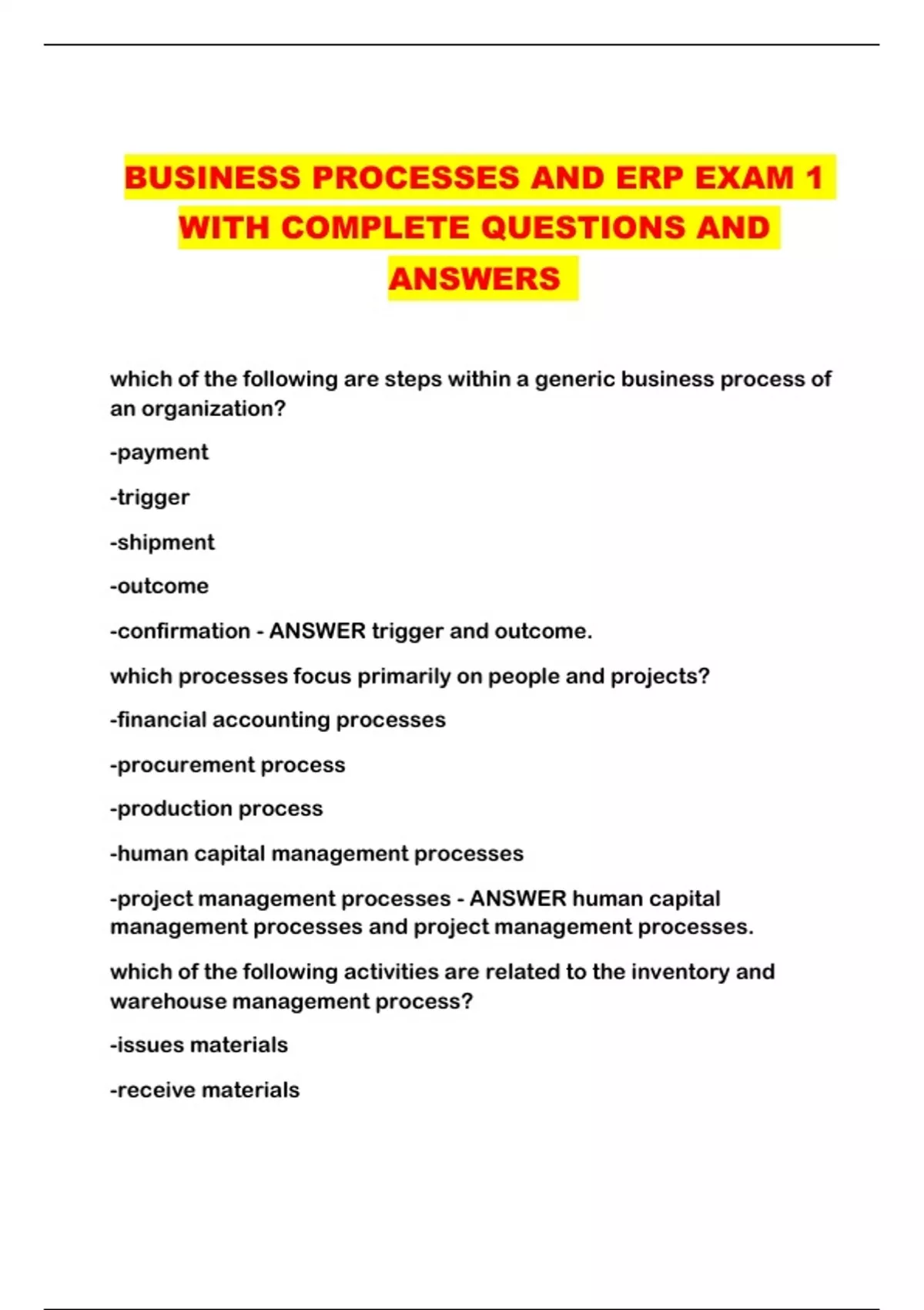 BUSINESS PROCESSES AND ERP EXAM 1