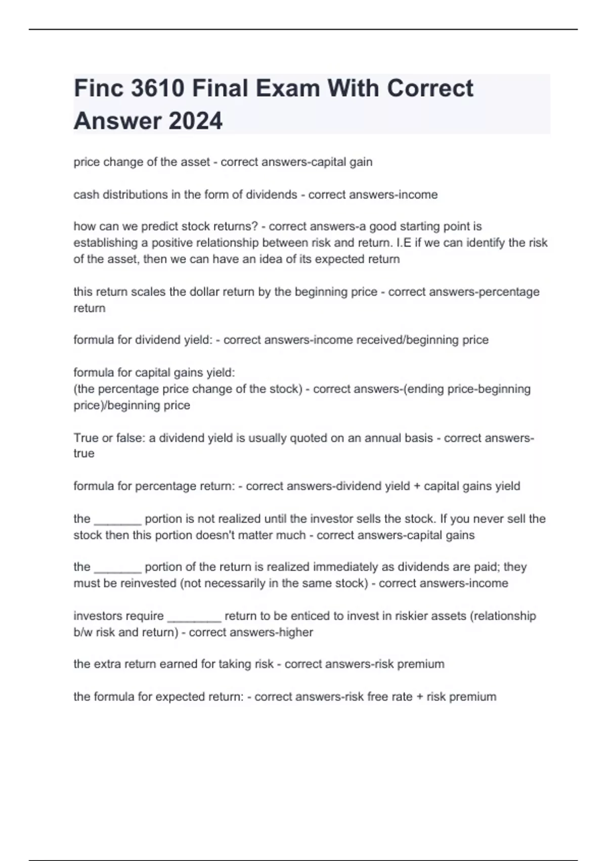 finc 3610 exam 1 with correct answers 2024