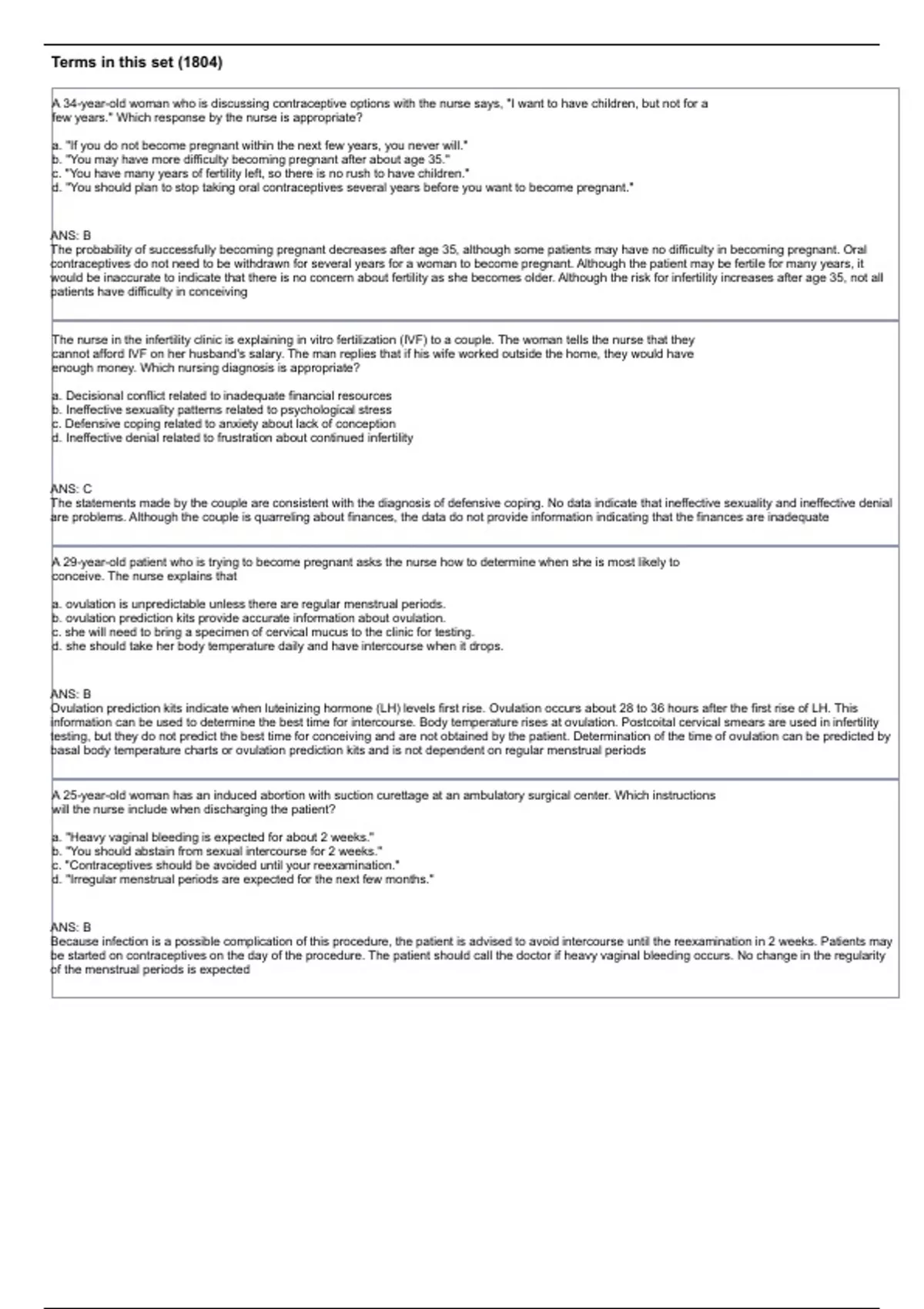 FEMALE REPRODUCTIVE PROBLEMS, LEWIS QUESTIONS WITH ANSWERS 100% CORRECT