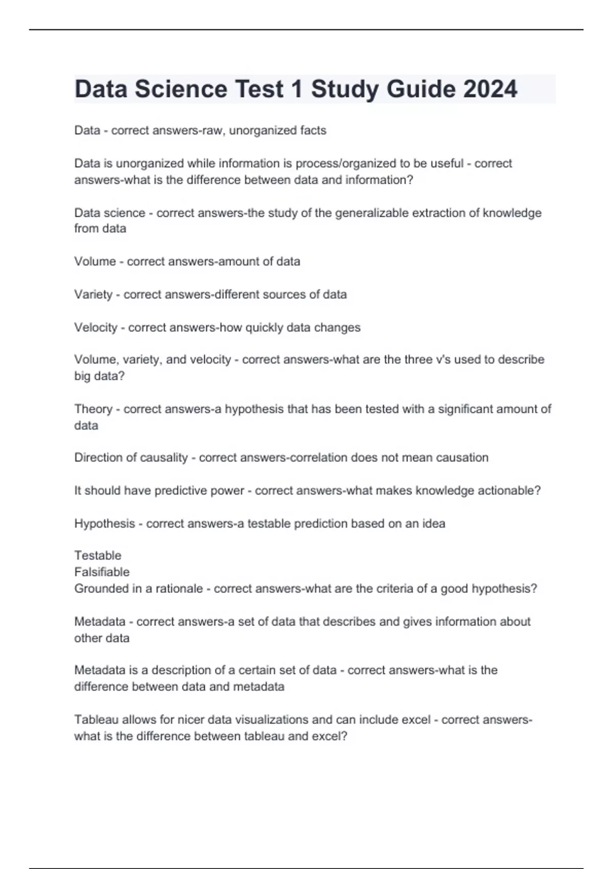 Data Science Test 1 Study Guide 2024