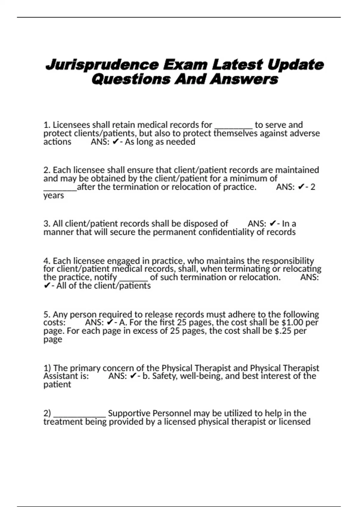 Jurisprudence Exam Latest Update Questions And Answers.