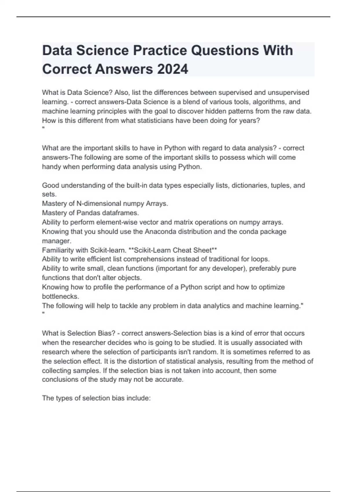 Data Science Practice Questions With Correct Answers 2024