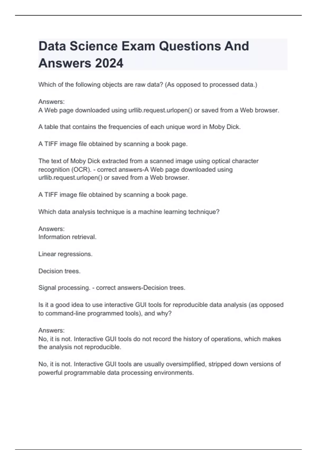Data Science Exam Questions And Answers 2024