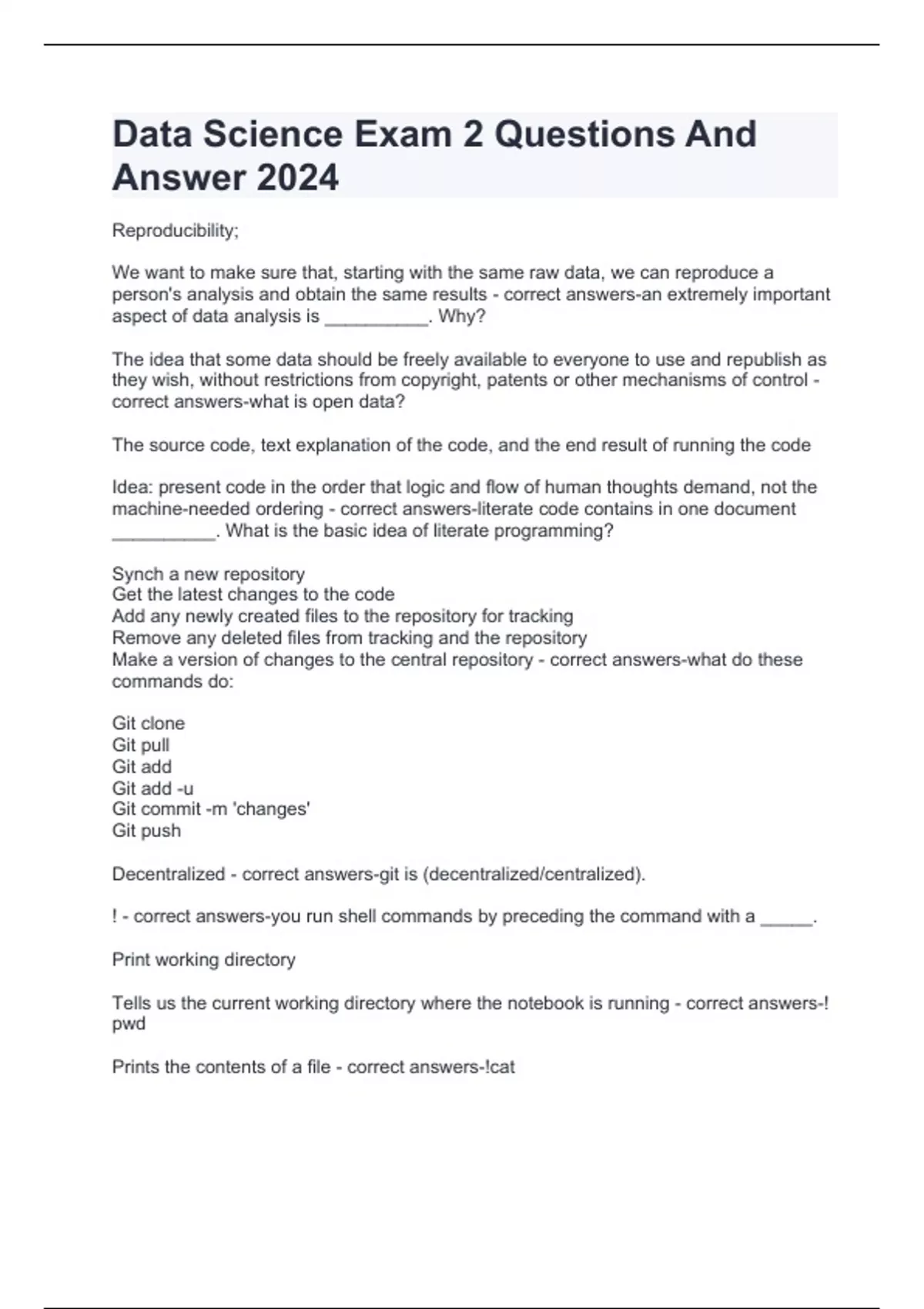 Data Science Exam 2 Questions And Answer 2024