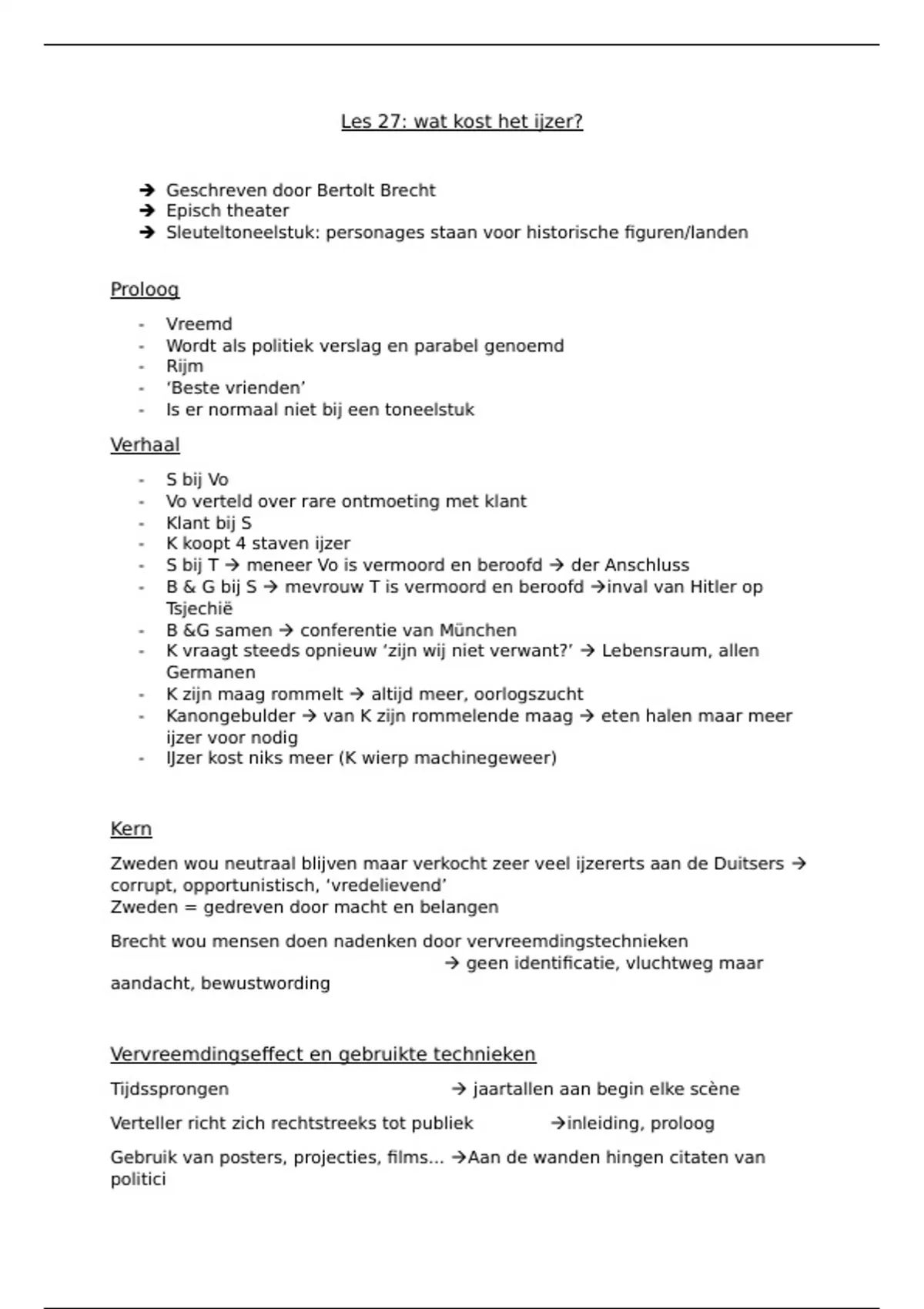 Samenvatting les 27 wat kost het ijzer van Bertolt Brecht