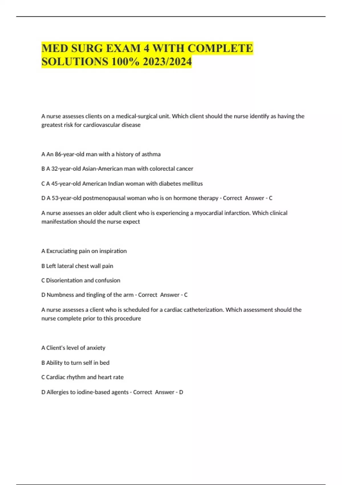 med surg exam 4 with complete solutions 100 2023