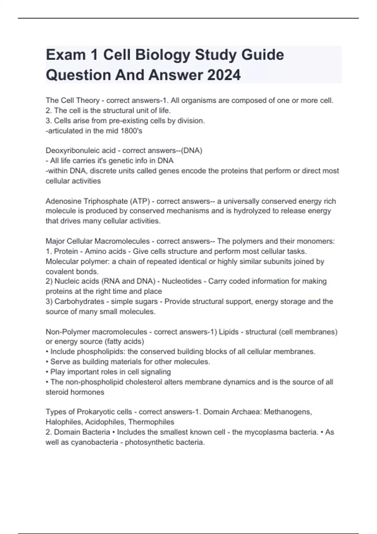 Exam 1 Cell Biology Study Guide Question And Answer 2024