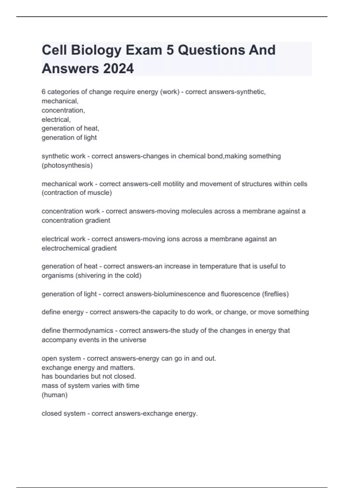 Cell Biology Exam 5 Questions And Answers 2024