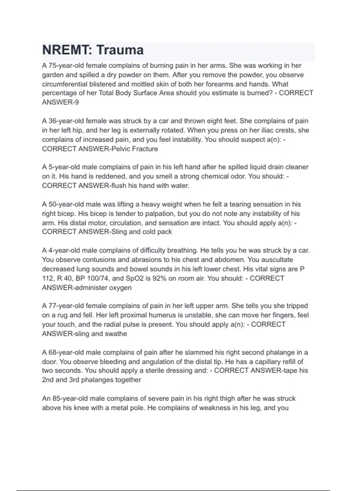 NREMT_ Trauma Questions with 100% Correct Answers Verified Latest Update 2024