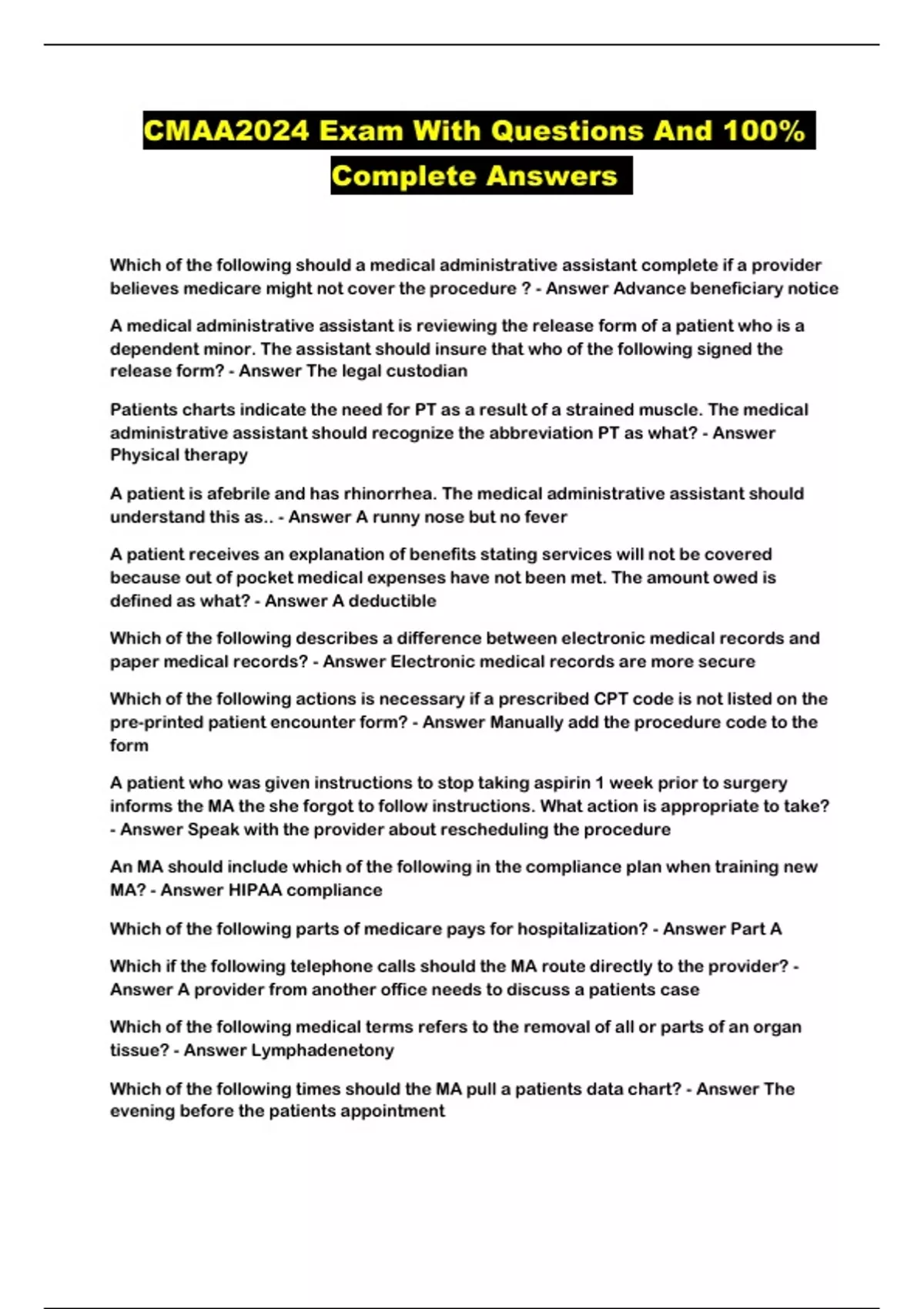 CMAA2024 Exam With Questions And 100% Complete Answers ...