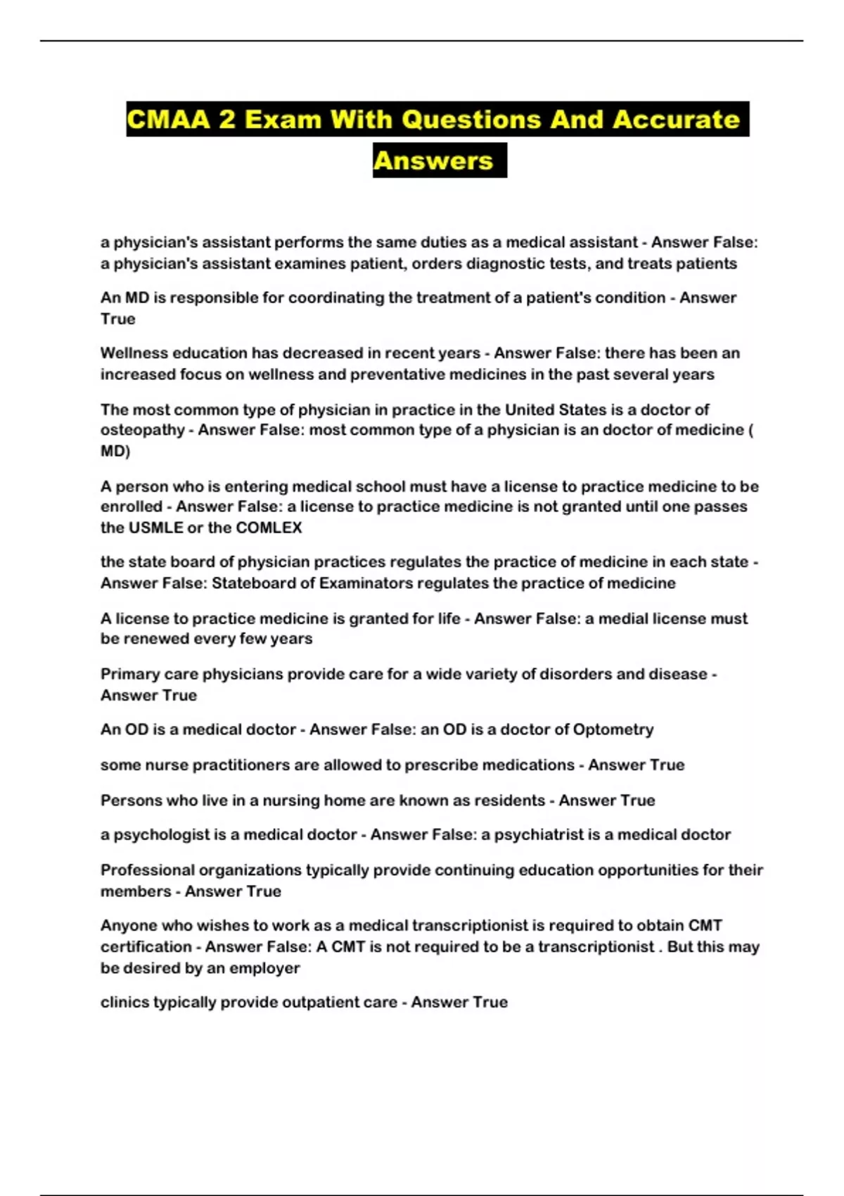 CMAA 2 Exam With Questions And Accurate Answers ...