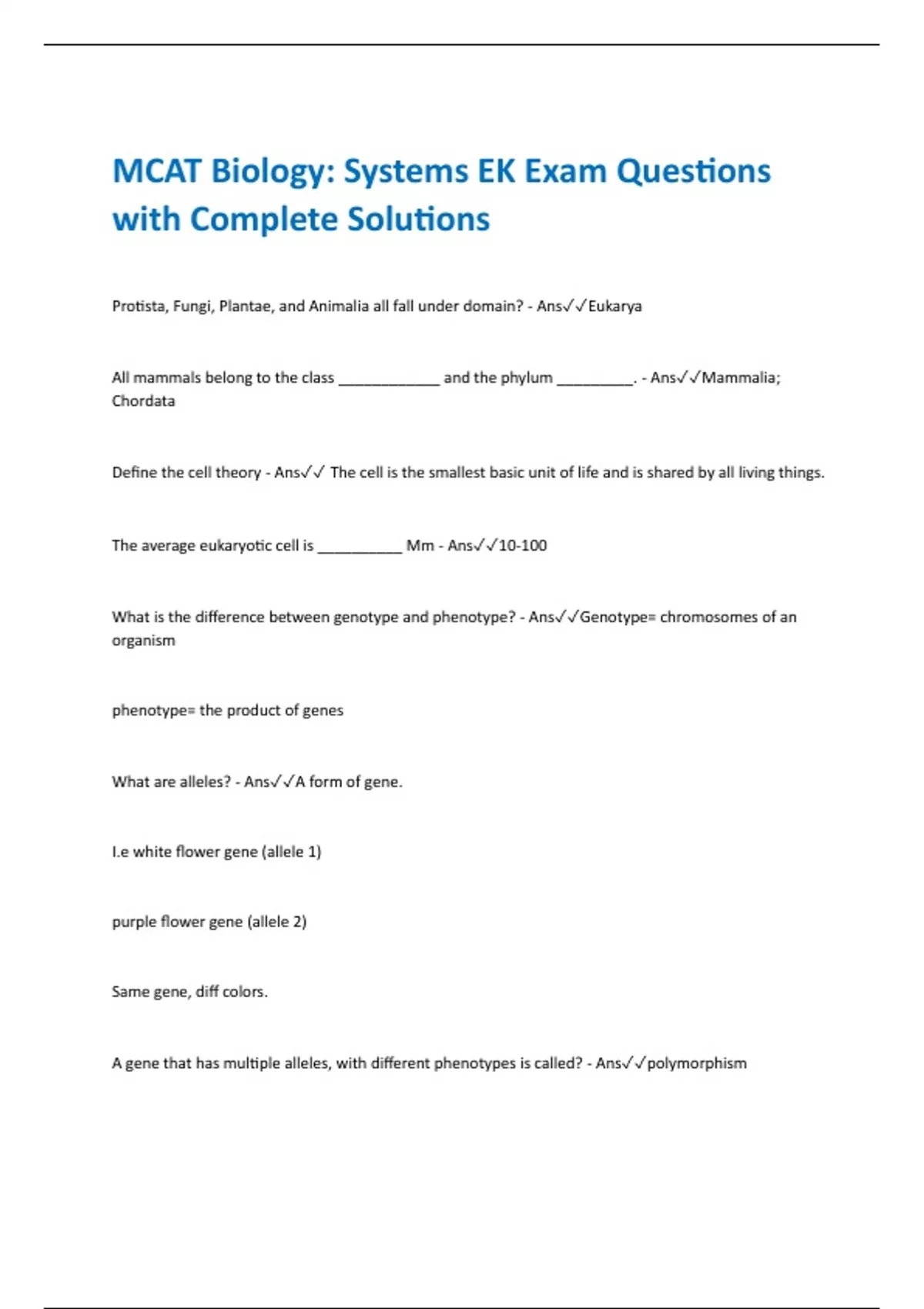 MCAT Biology: Systems EK Exam Questions with Complete Solutions