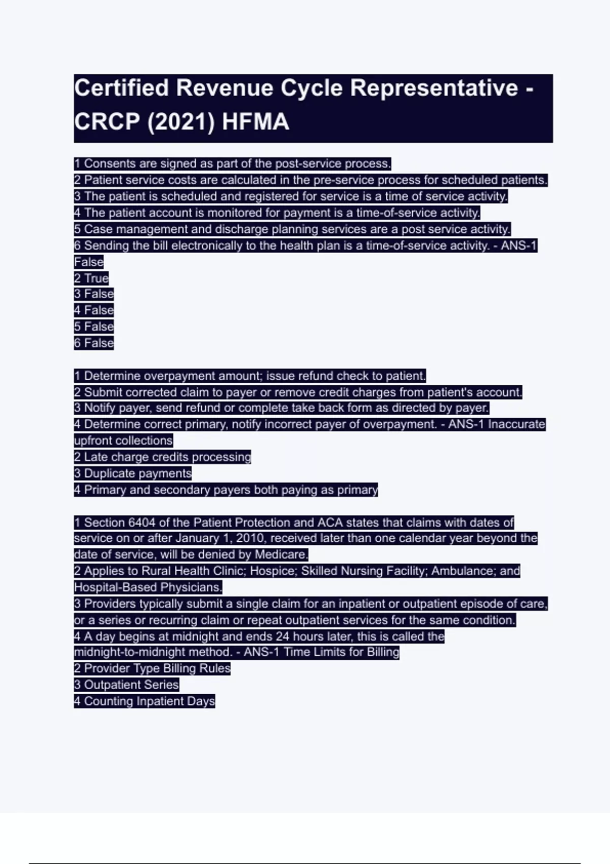 Certified Revenue Cycle Representative - CRCP (2021) HFMA