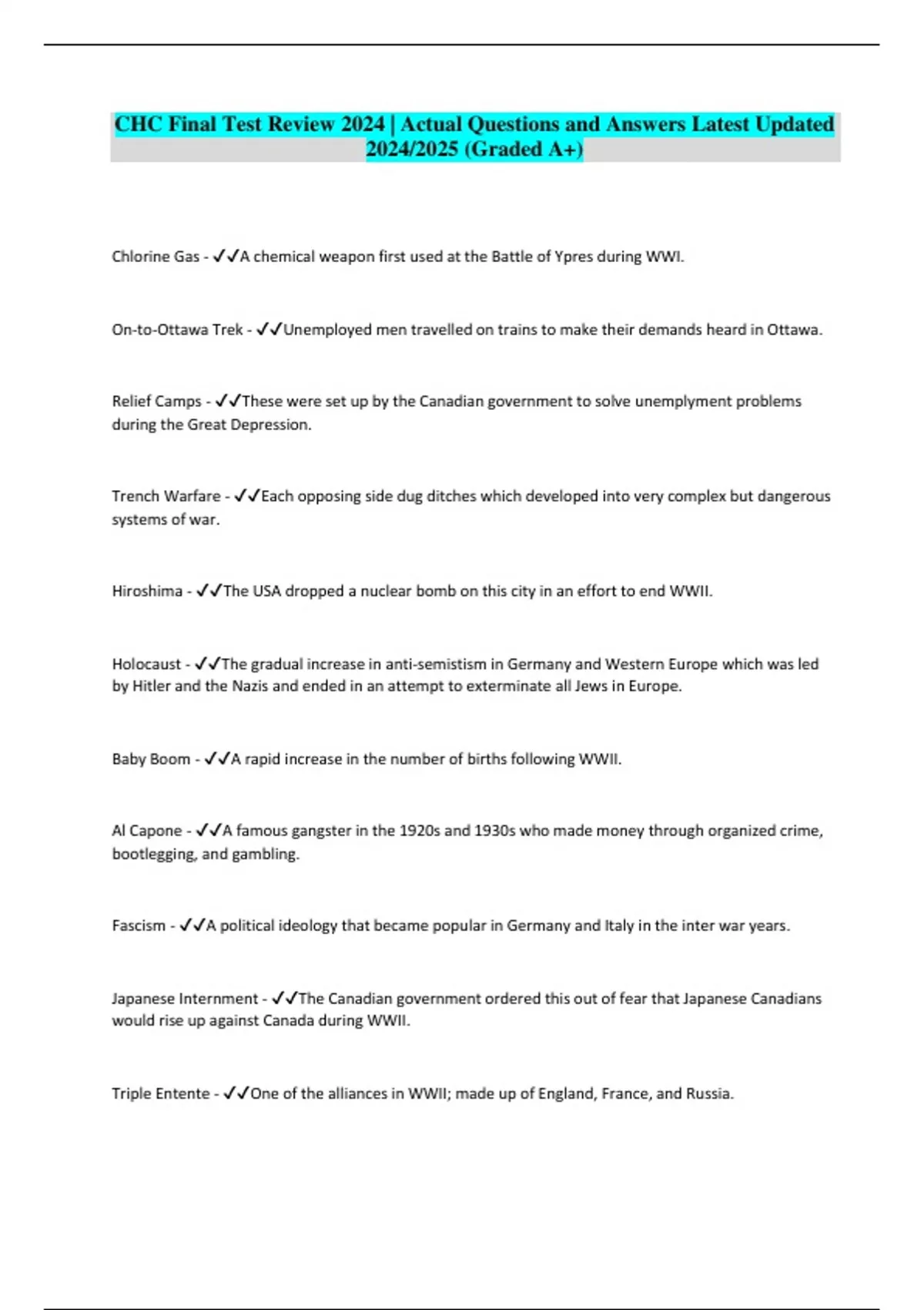 CHC Final Test Review 2024 | Actual Questions and Answers Latest Updated 2024/2025 (Graded A+)