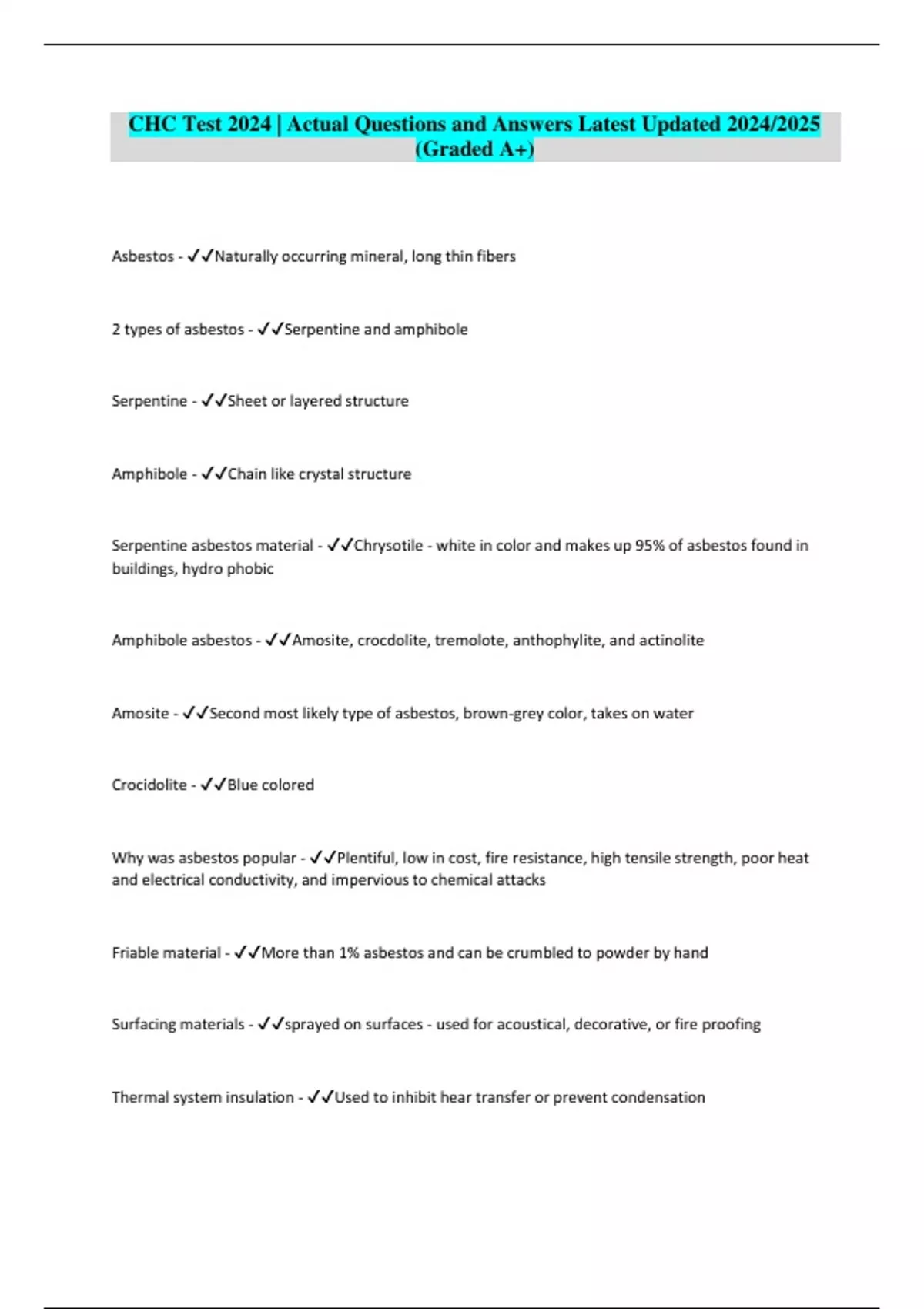 chc test 2024 actual questions and answers lates