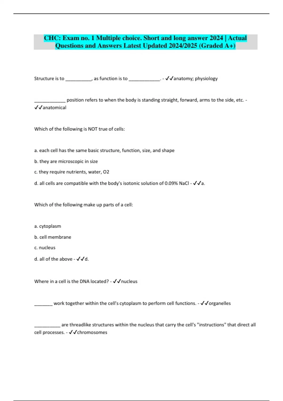 CHC: Exam no. 1 Multiple choice. Short and long answer 2024 | Actual Questions and Answers Latest Updated 2024/2025 (Graded A+)