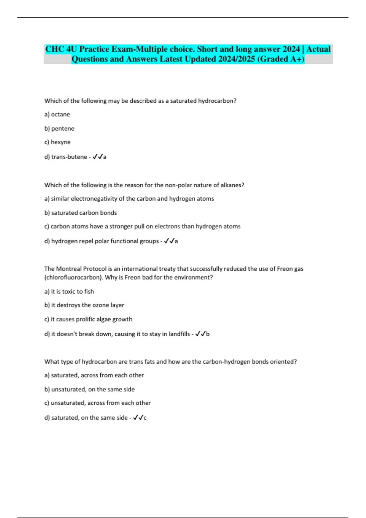 CHC 4U Practice Exam-Multiple choice. Short and long answer 2024 | Actual Questions and Answers Latest Updated 2024/2025 (Graded A+)