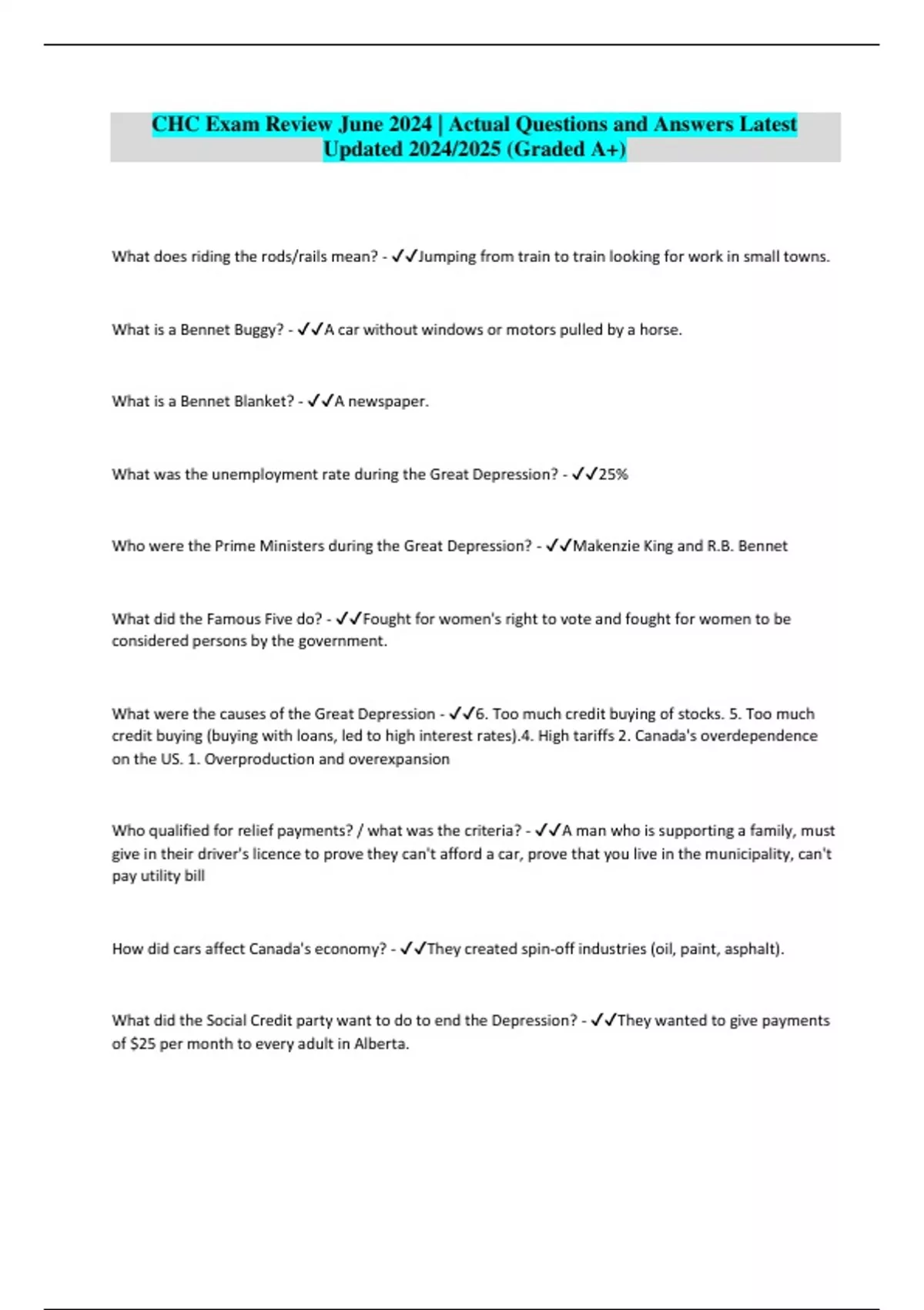 CHC Exam Review June 2024 | Actual Questions and Answers Latest Updated 2024/2025 (Graded A+)
