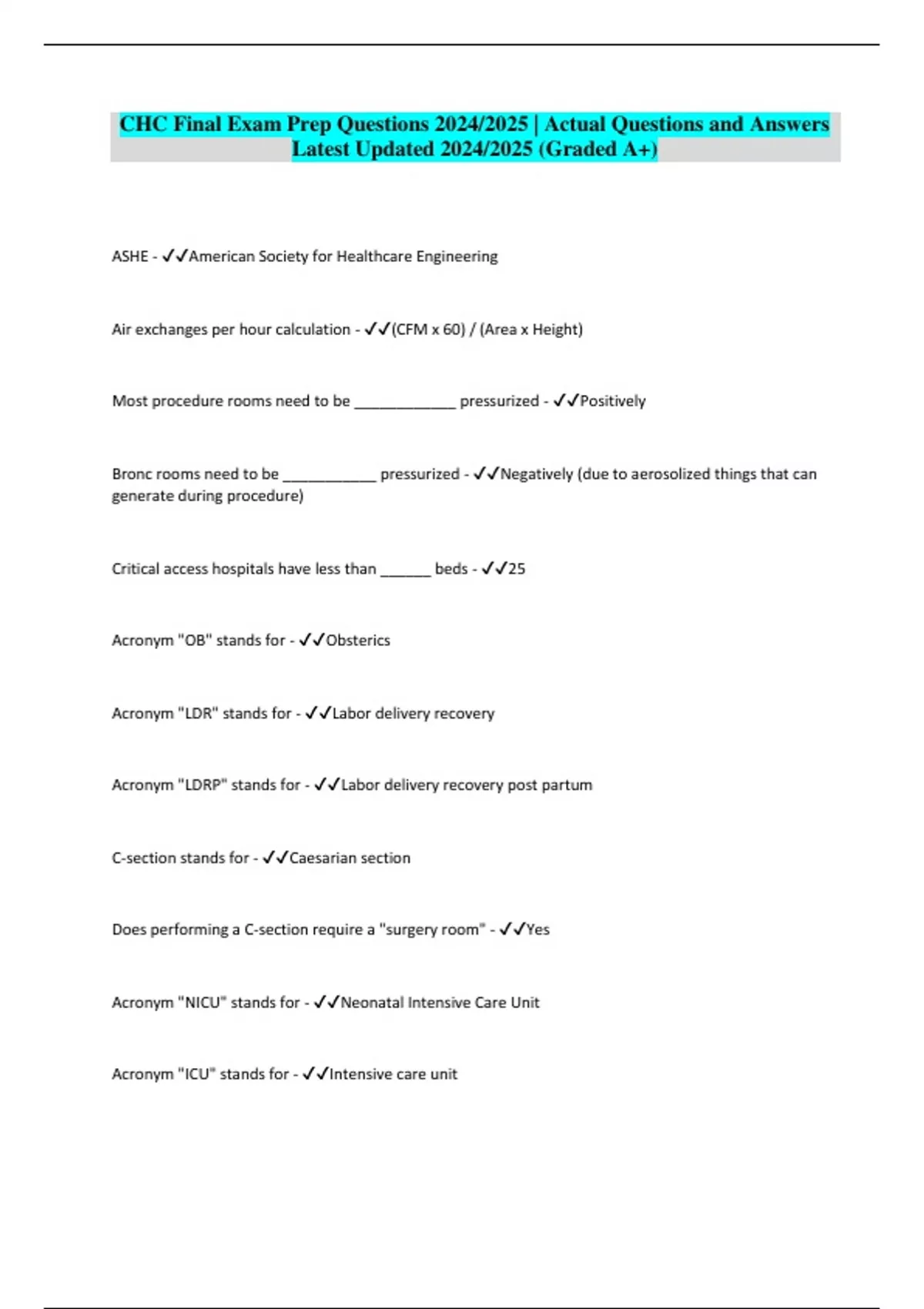 CHC Final Exam Prep Questions 2024/2025 | Actual Questions and Answers Latest Updated 2024/2025 (Graded A+)