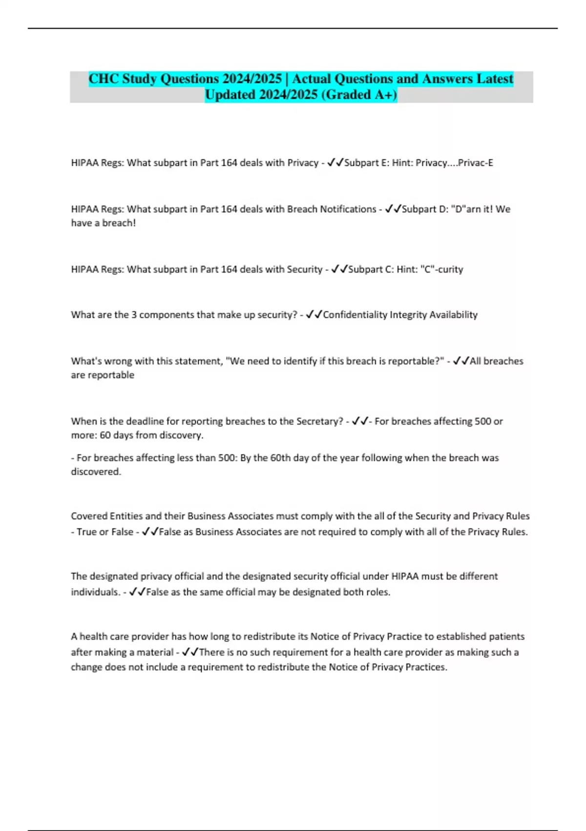 Package deal:: CHC Exams | Actual Exam Questions And Answers Latest Updated 2024/2025 (Graded A