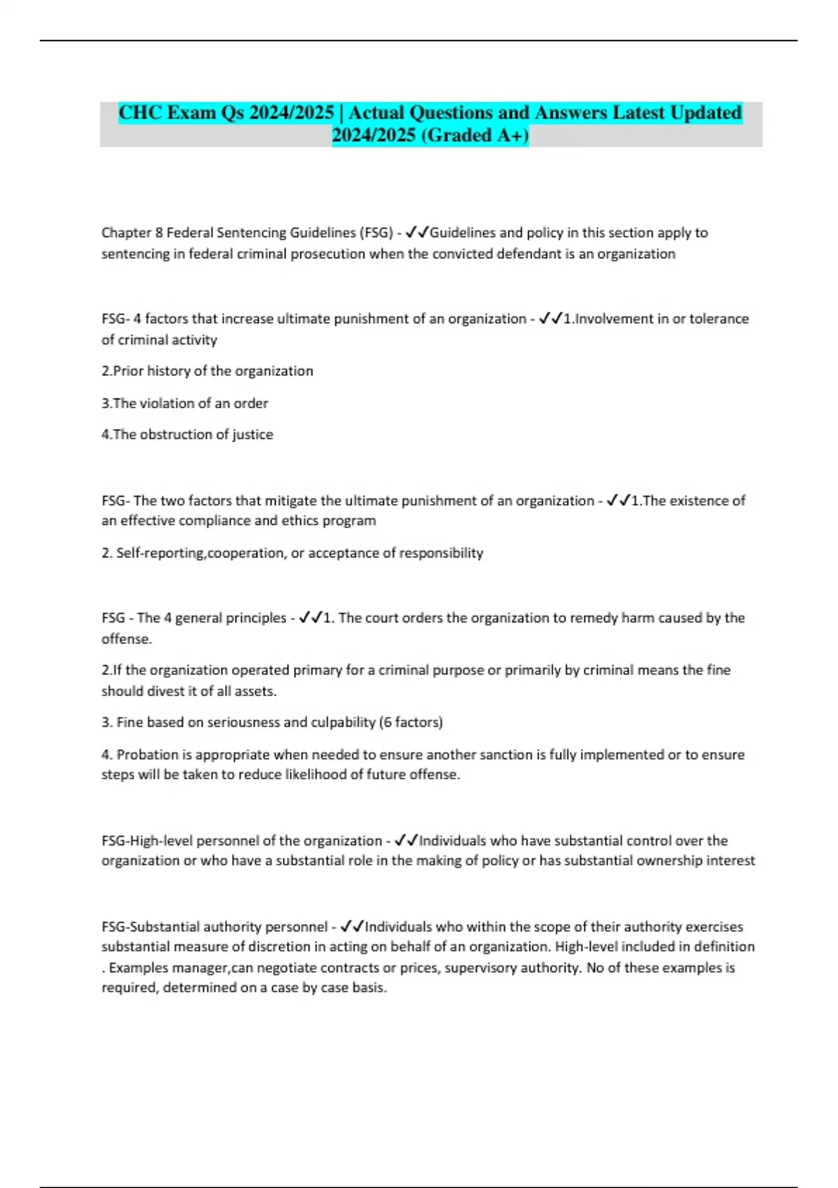 CHC Exam Qs 2024/2025 | Actual Questions and Answers Latest Updated 2024/2025 (Graded A+)