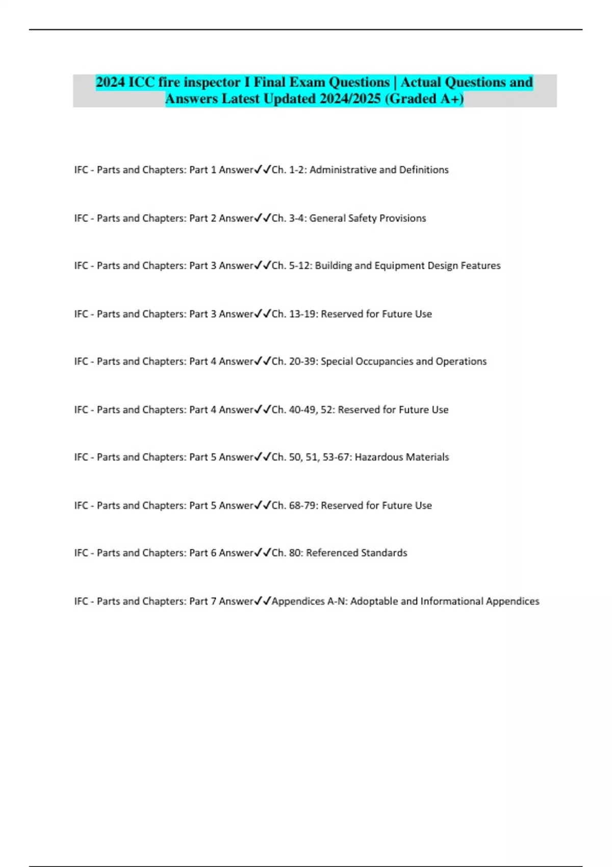 2024 ICC fire inspector I Final Exam Questions | Actual Questions and Answers Latest Updated 2024/2025 (Graded A+)