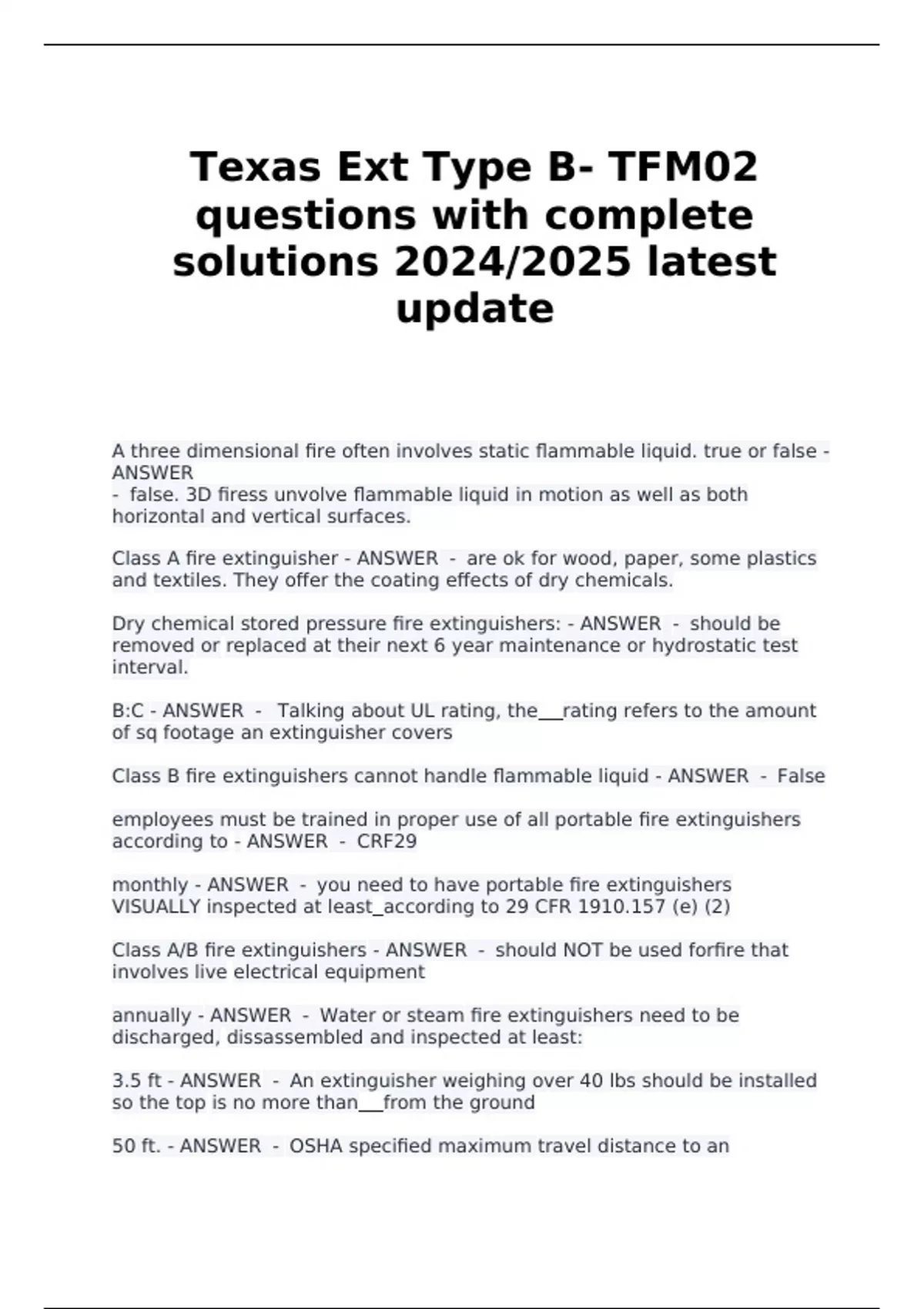 Texas Ext Type B- TFM02 questions with complete solutions 2024/2025 latest update