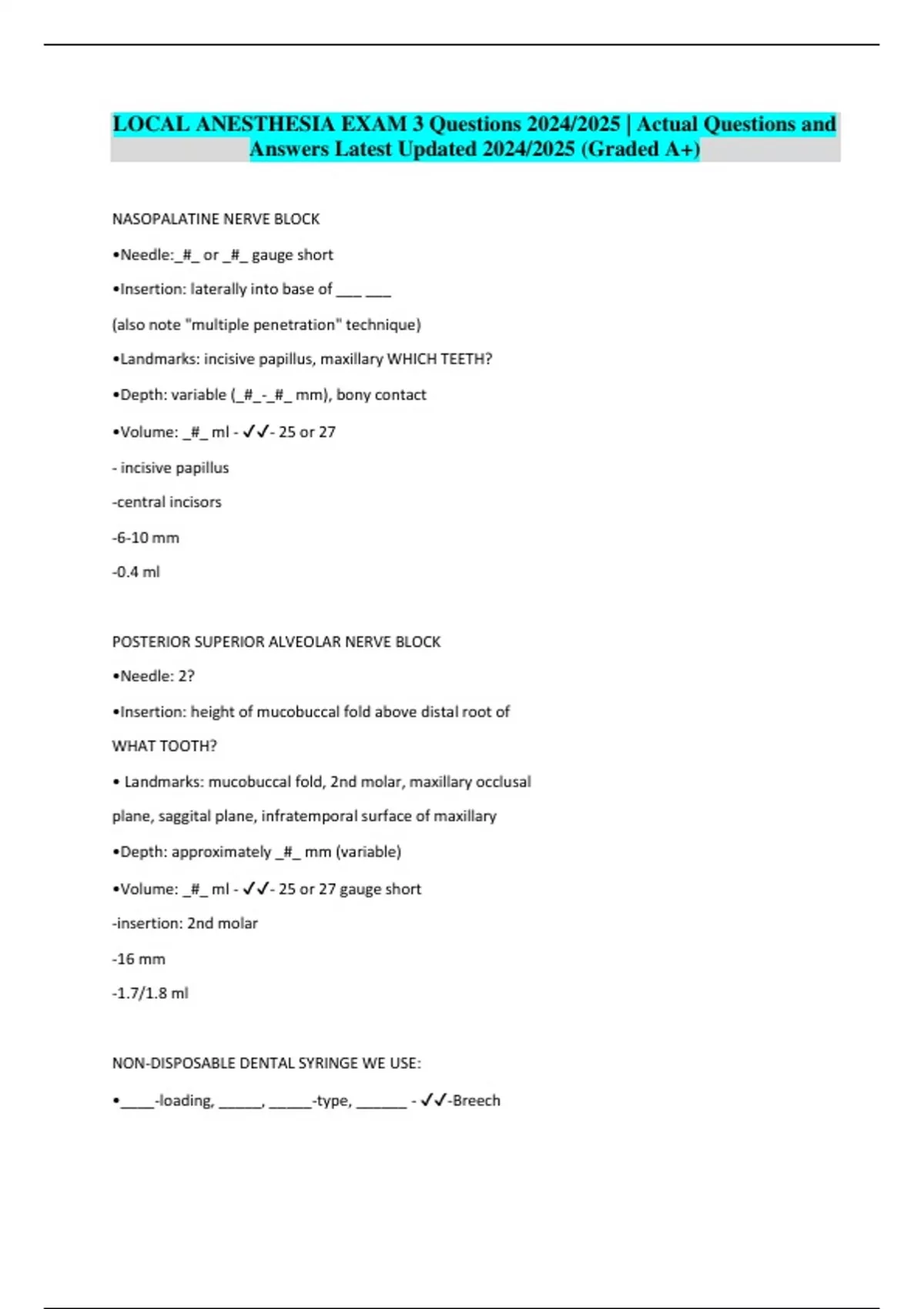 LOCAL ANESTHESIA EXAM 3 Questions 2024/2025 | Actual Questions and Answers Latest Updated 2024/2025 (Graded A+)
