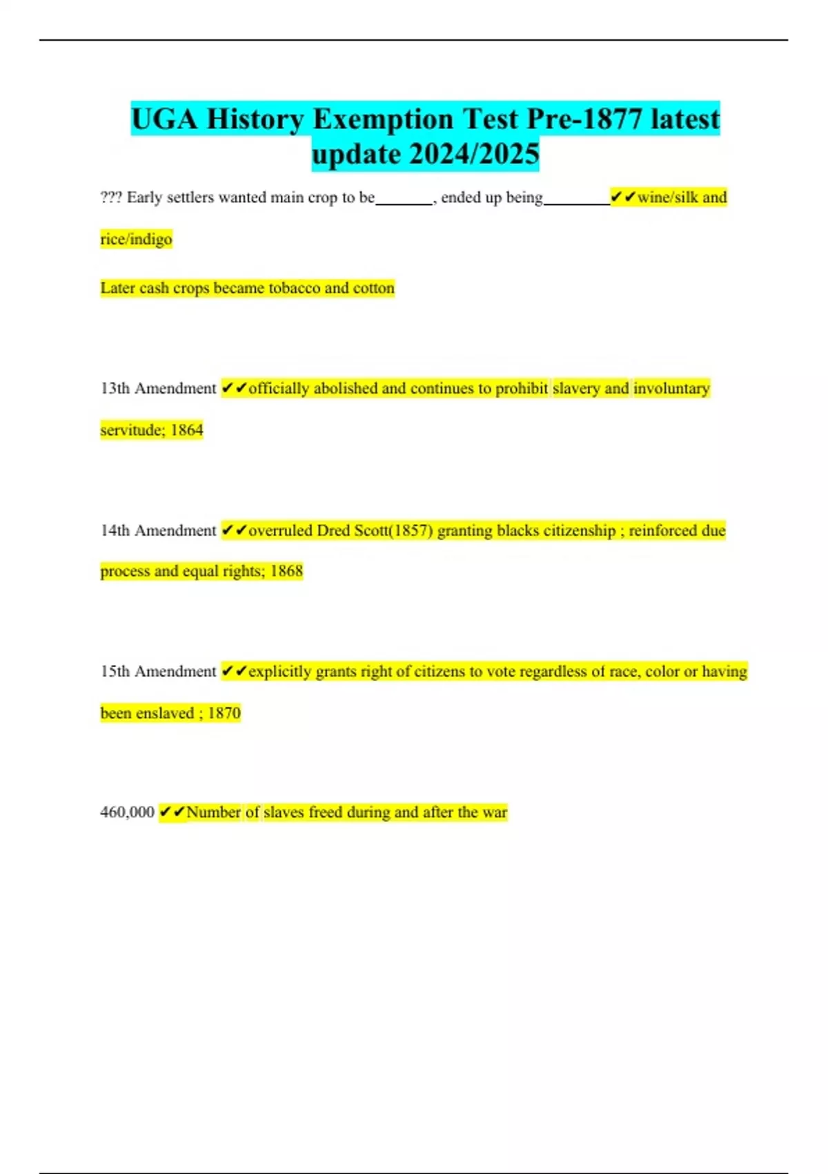 UGA History Exemption Test Pre-1877 latest update 2024/2025