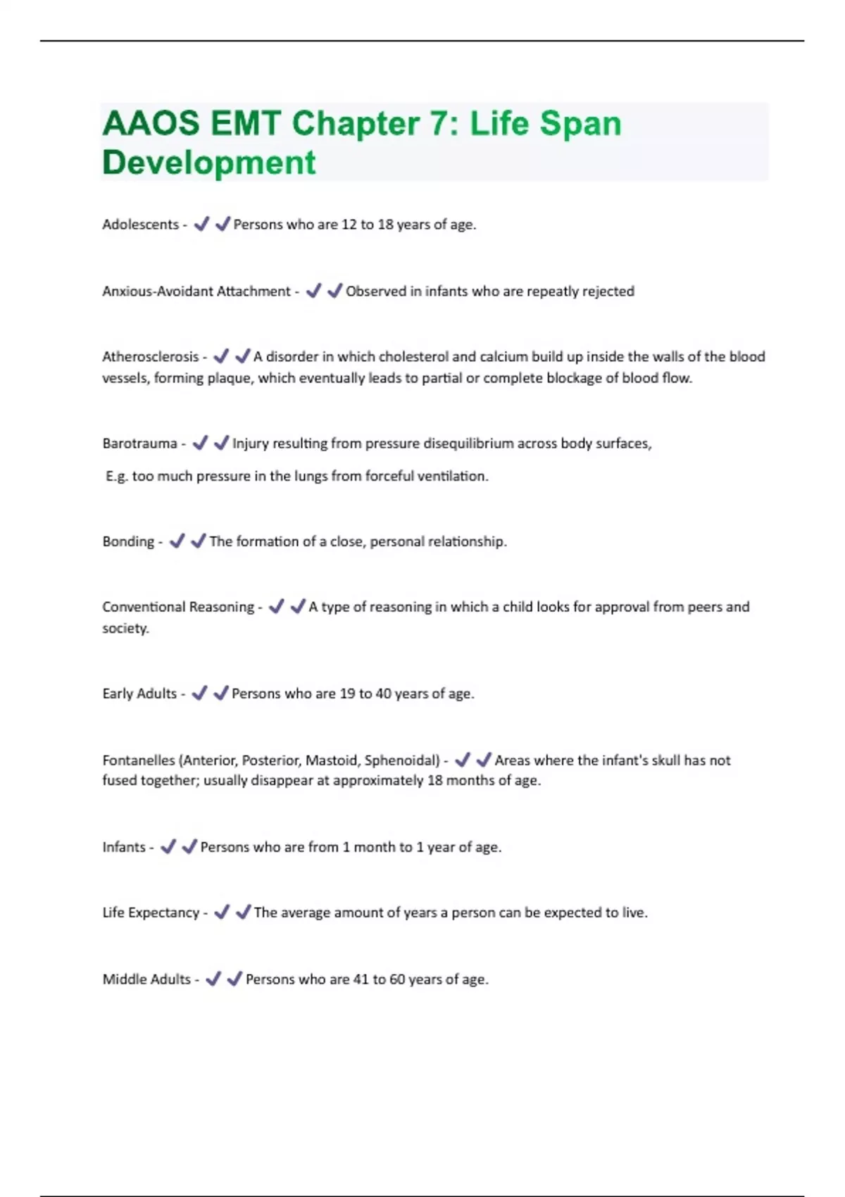 AAOS EMT Chapter 7: Life Span Development Questions And Answers Rated A+