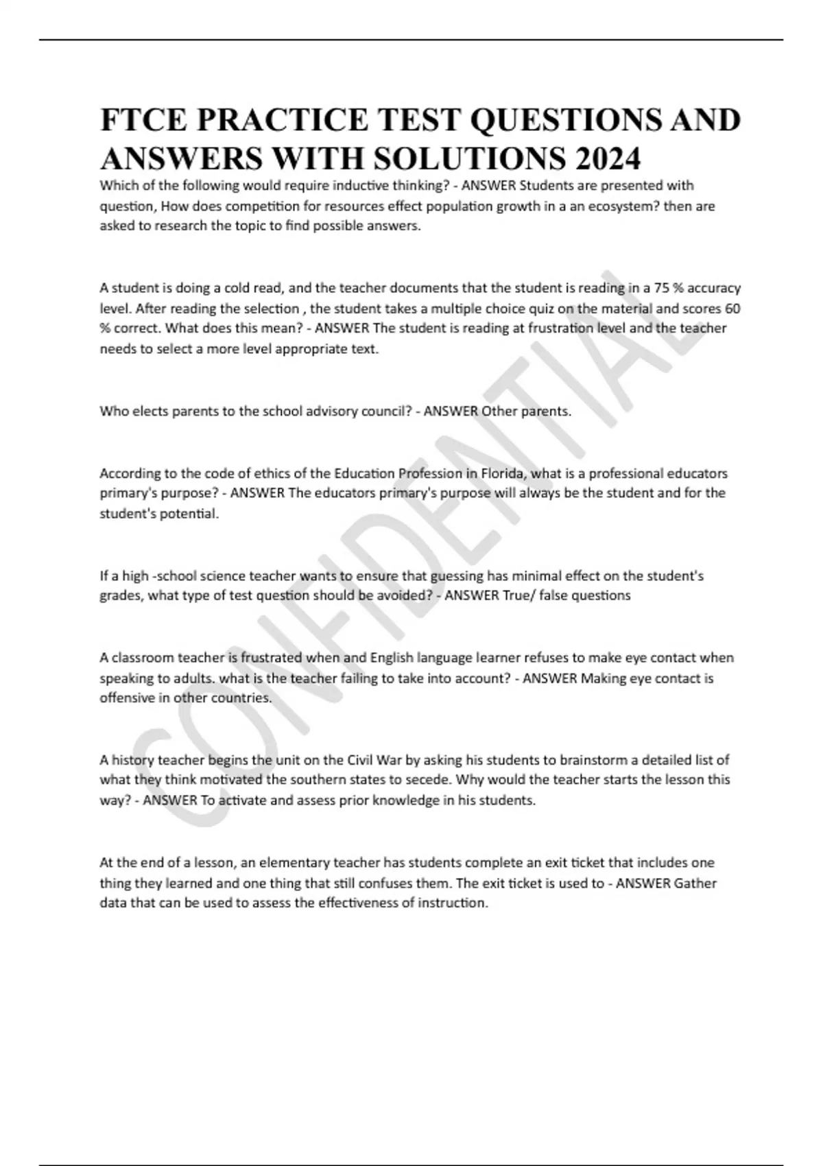 FTCE PRACTICE TEST QUESTIONS AND ANSWERS WITH SOLUTIONS 2024
