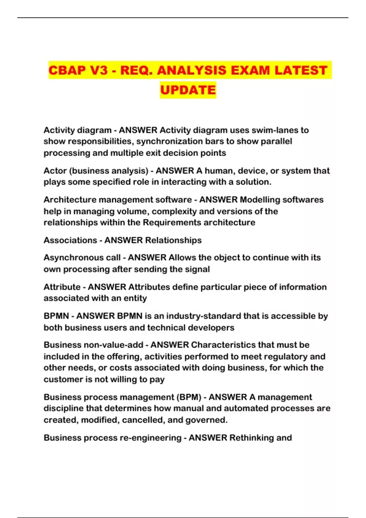 CBAP V3 - REQ. ANALYSIS EXAM LATEST UPDATE...