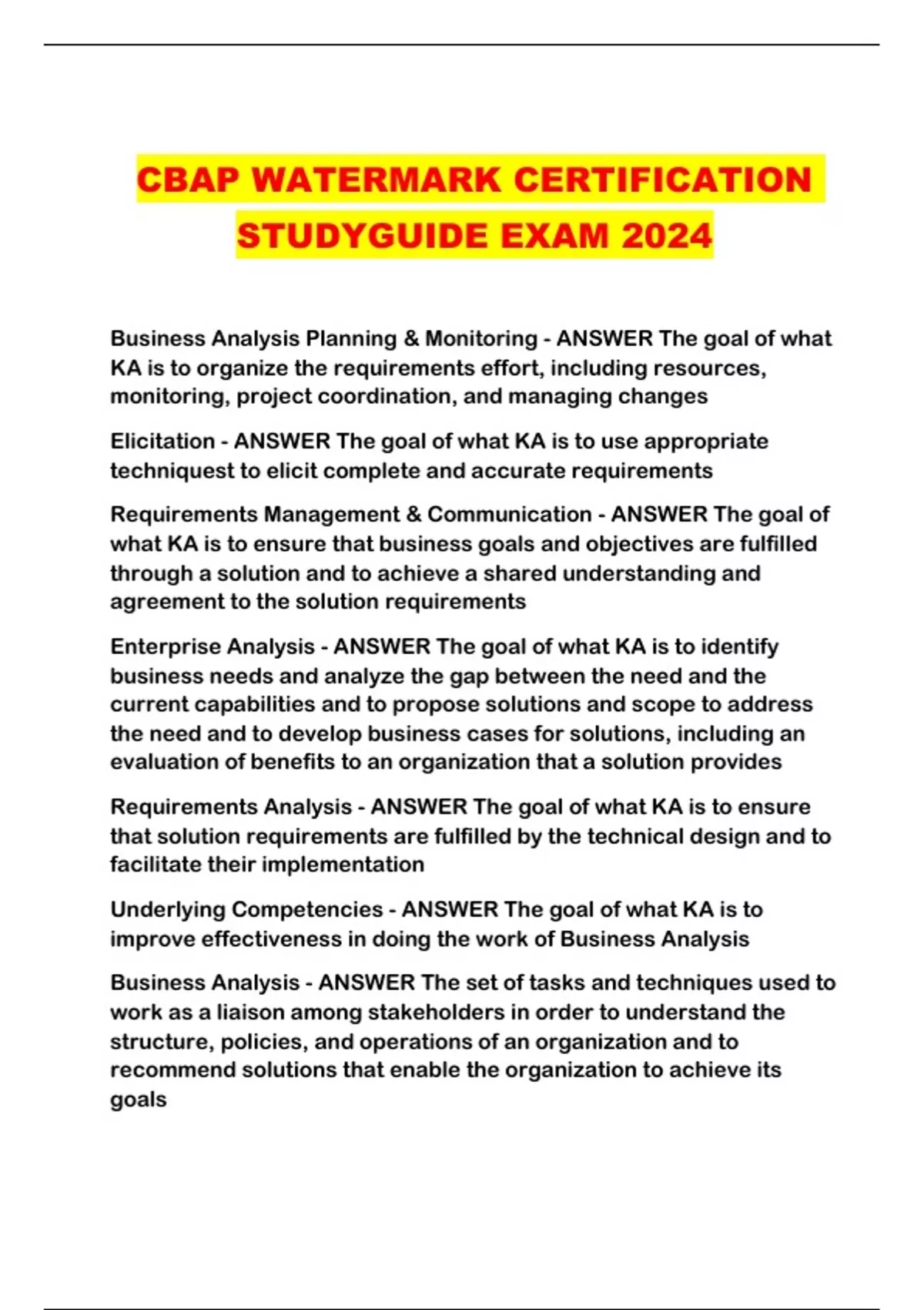 CBAP WATERMARK CERTIFICATION STUDYGUIDE EXAM 2024...