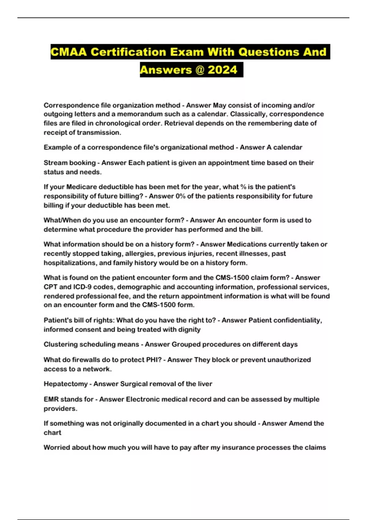 CMAA Certification Exam With Questions And Answers @ 2024 ...