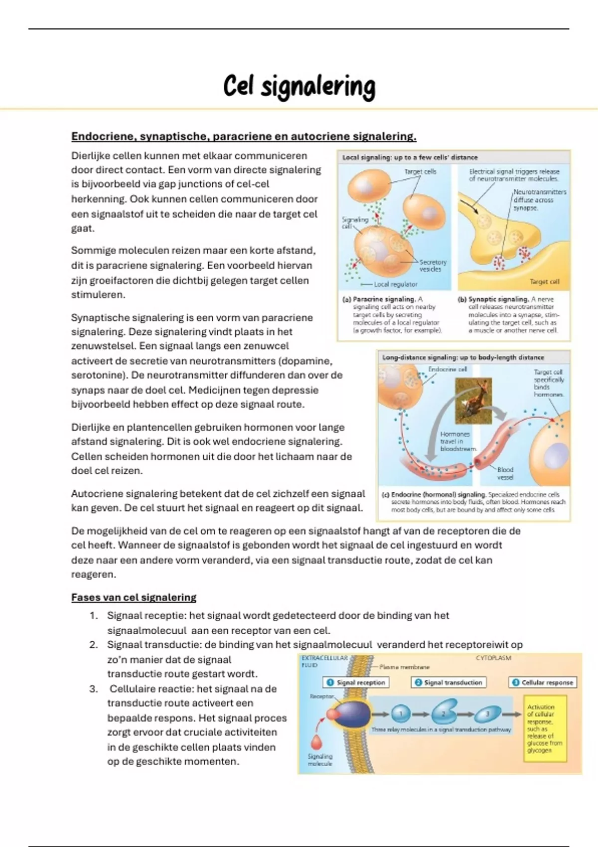 Endocriene, synaptische, paracriene en autocriene signalering.