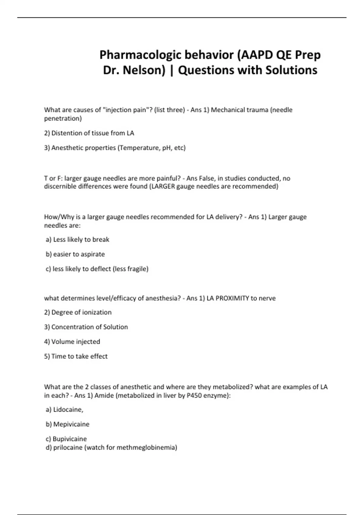Pharmacologic behavior (AAPD QE Prep Dr. Nelson) | Questions with Solutions