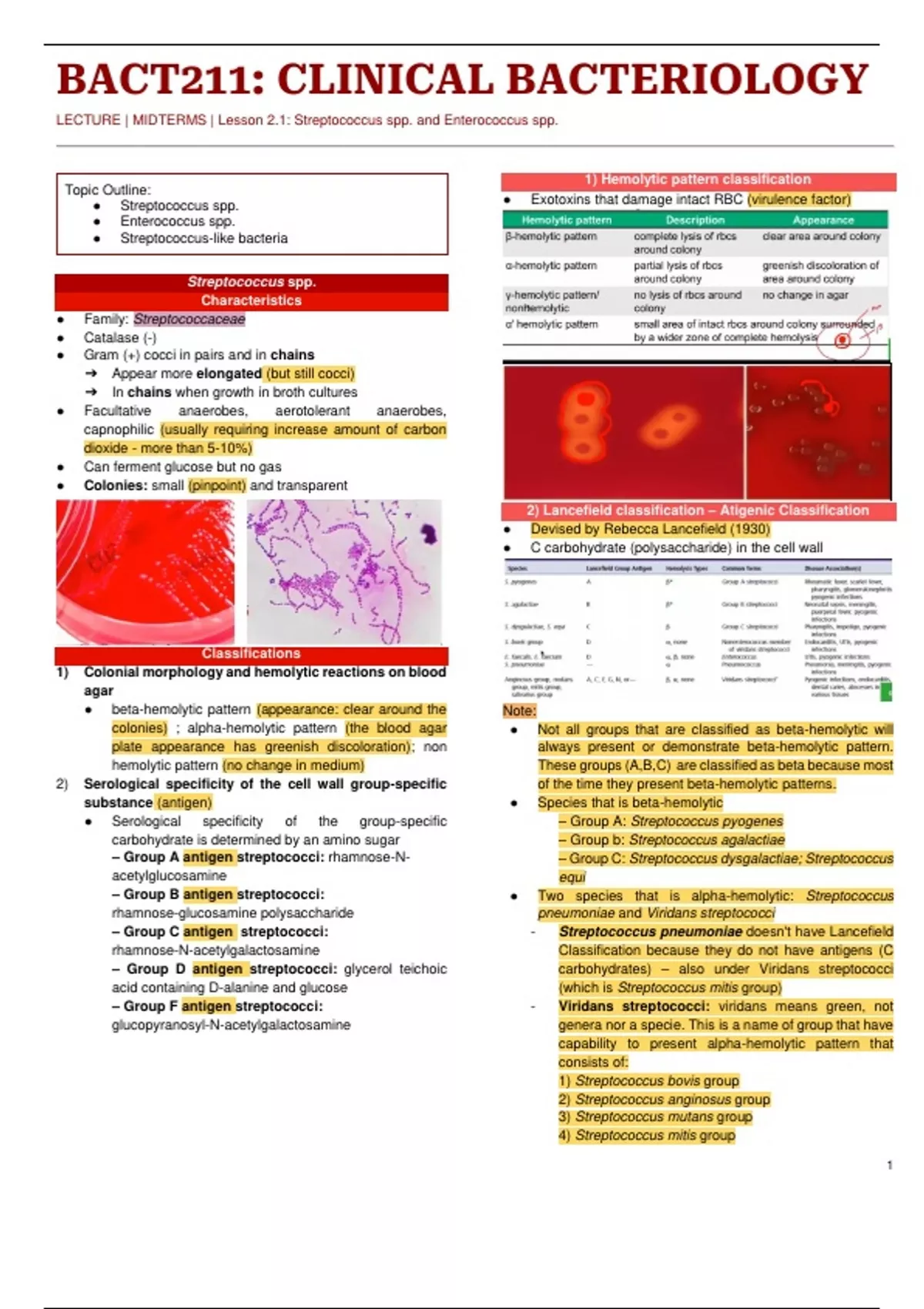 Summary Clinical Microbiology Streptococcus spp. and Enterococcus spp.
