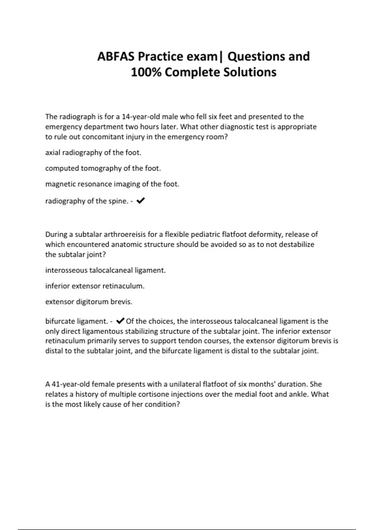 ABFAS Practice exam| Questions and 100% Complete Solutions