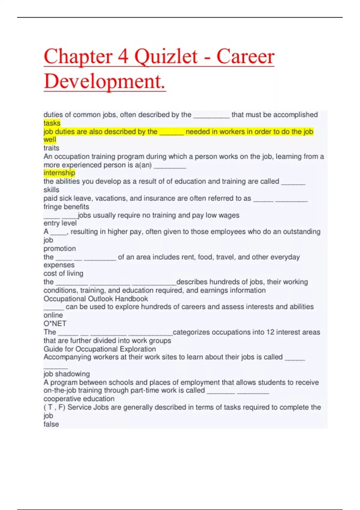 Chapter 4 Quizlet - Career Top Class Solution.