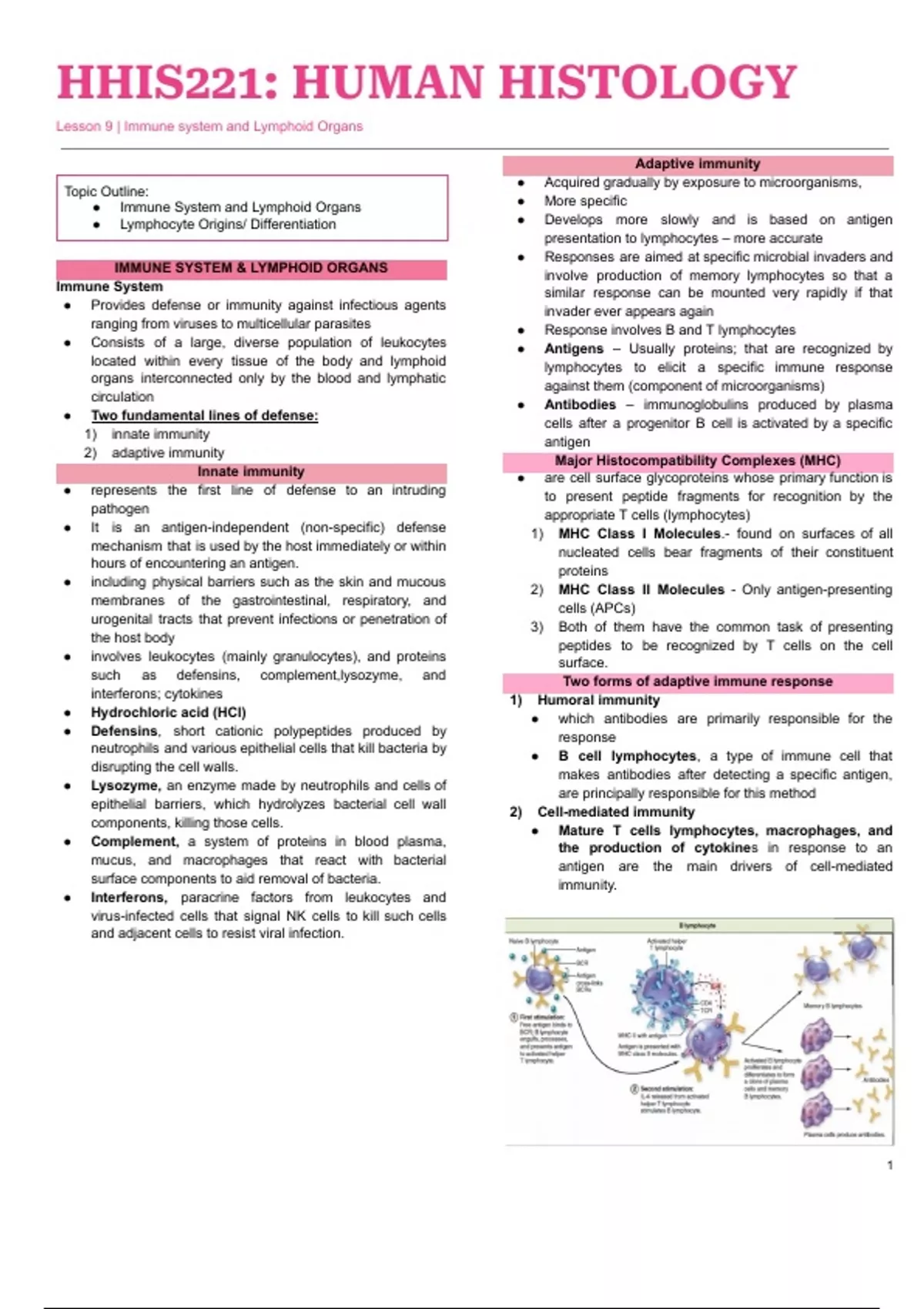 Lesson 9 | Immune system and Lymphoid Organs