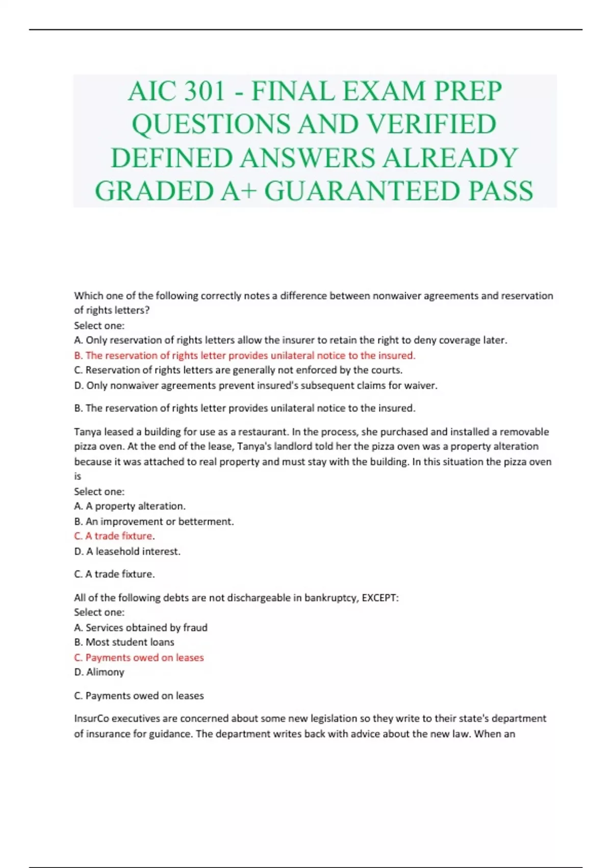 aic 301 final exam prep questions and verified d