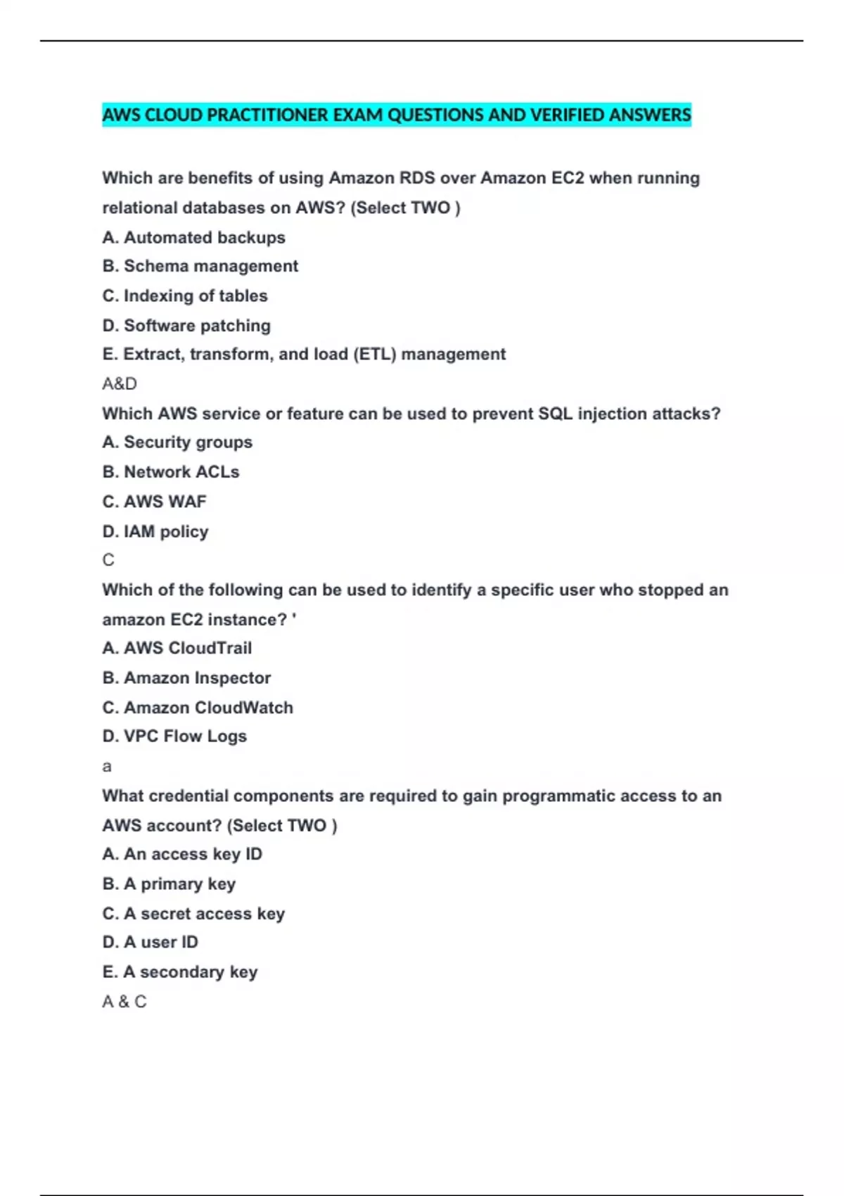 AWS account? (Select TWO )