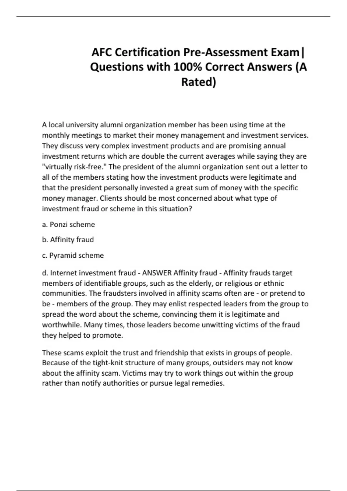 AFC Certification Pre-Assessment Exam| Questions with 100% Correct Answers (A Rated)