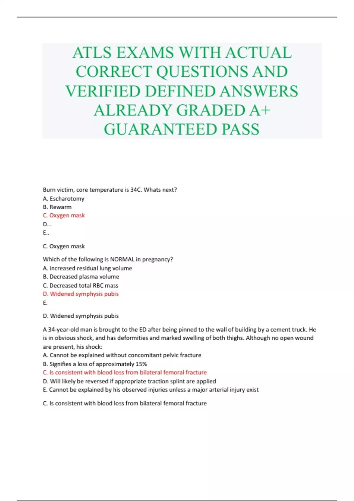 ATLS EXAMS WITH ACTUAL CORRECT QUESTIONS AND VERIFIED DEFINED ANSWERS ALREADY GRADED A+ GUARANTEED PASS