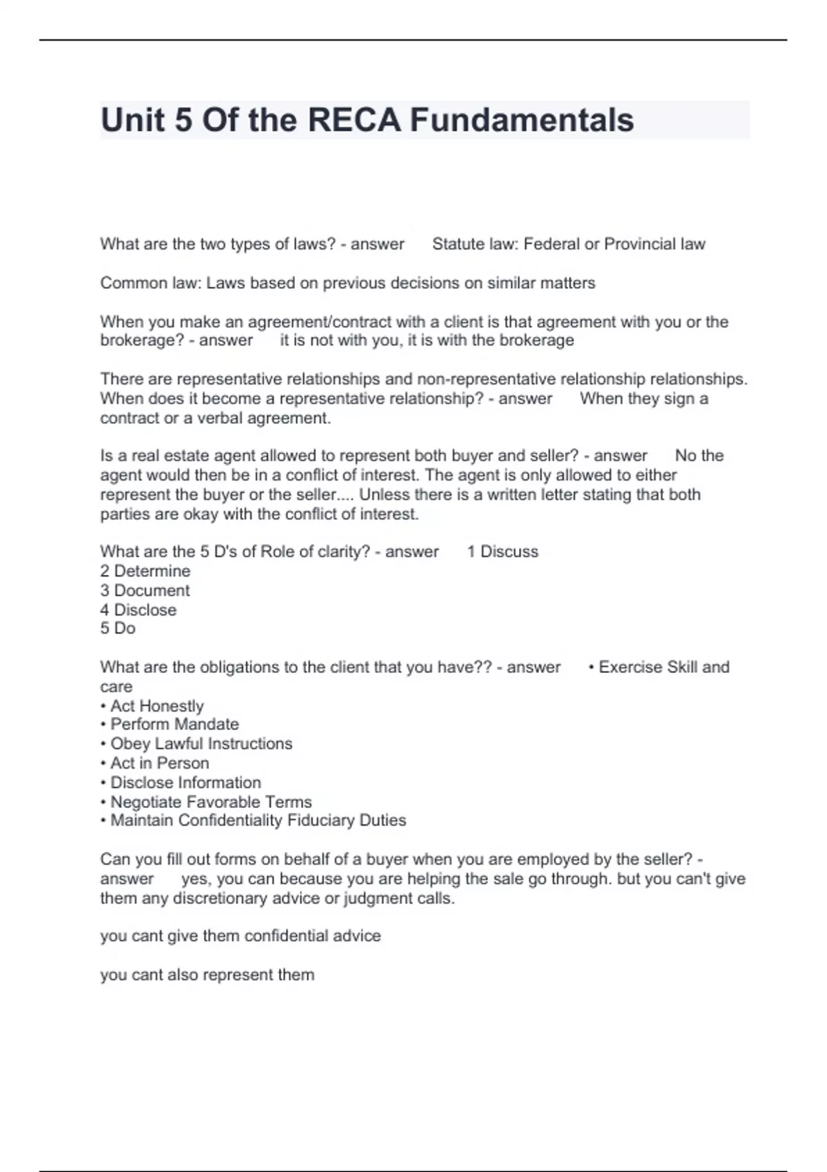 Unit 5 Of the RECA Fundamentals Questions and Answers Latest Updated