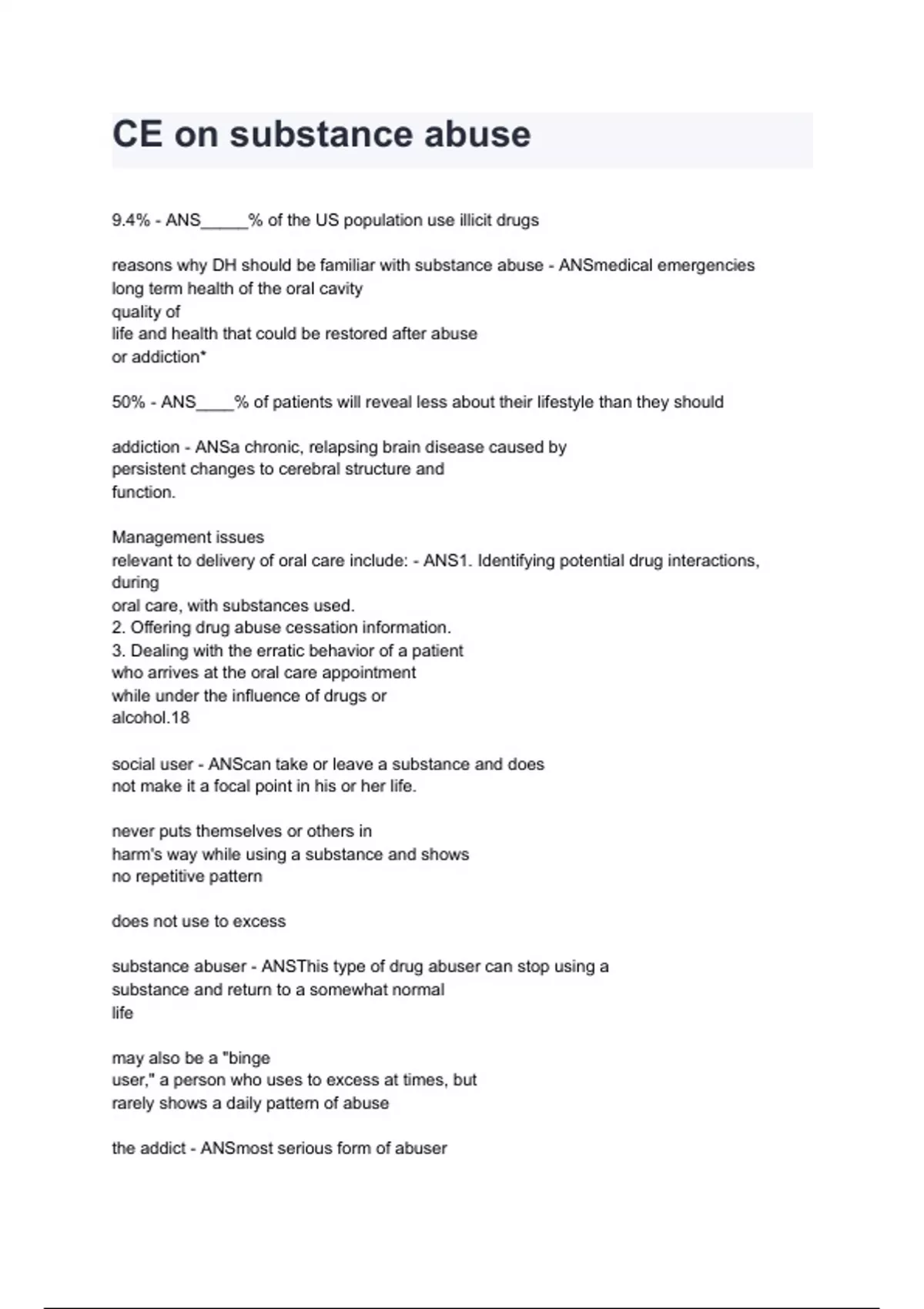 CE on substance abuse questions and answers rated A+ 2024/2025