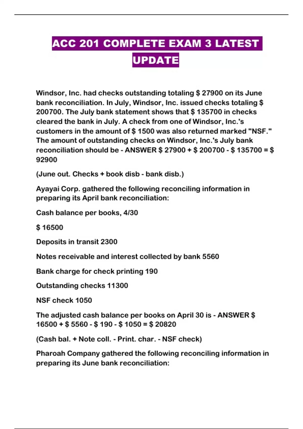 ACC 201 COMPLETE EXAM 3 LATEST UPDATE...