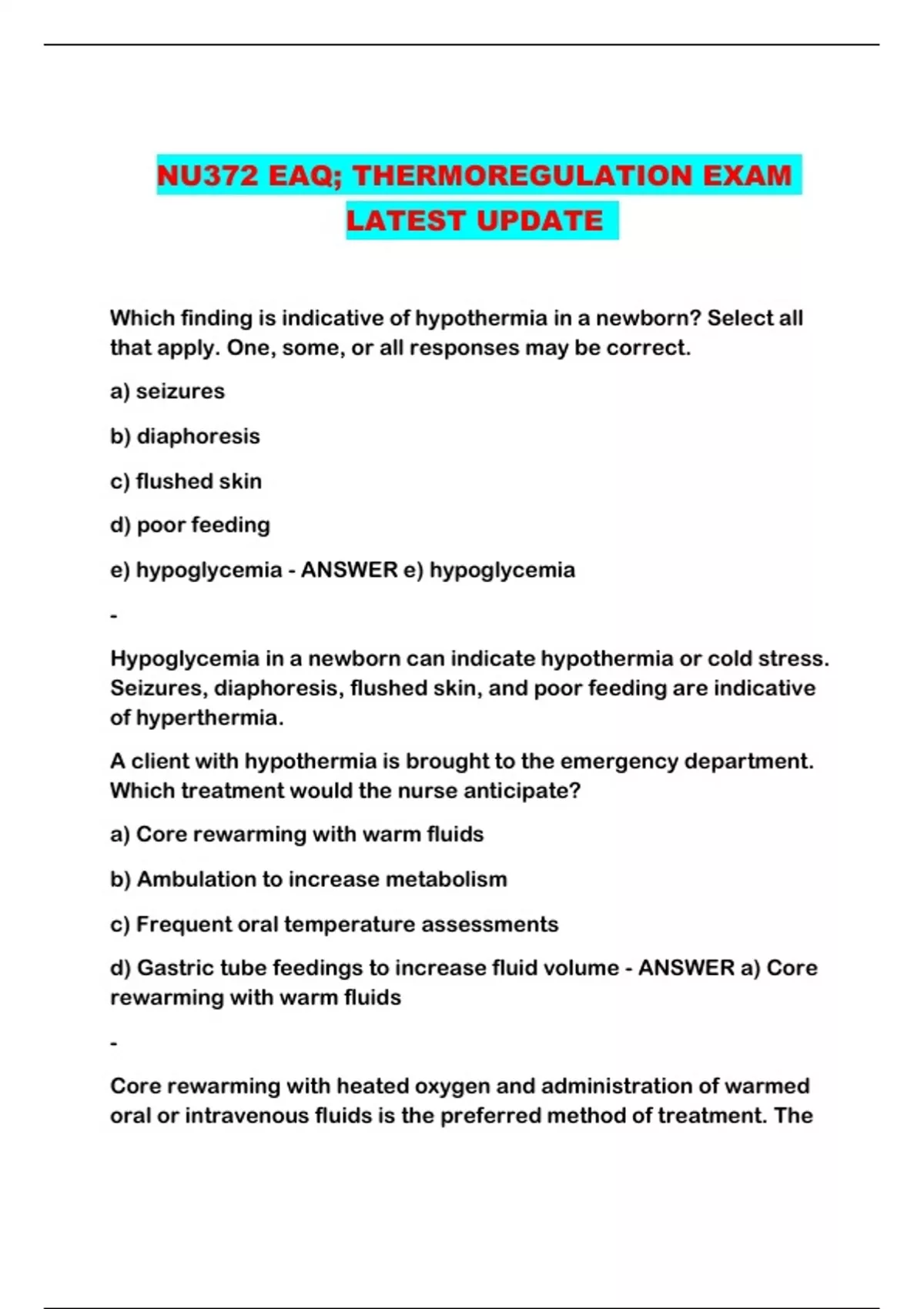 NU372 EAQ; THERMOREGULATION EXAM LATEST UPDATE ...